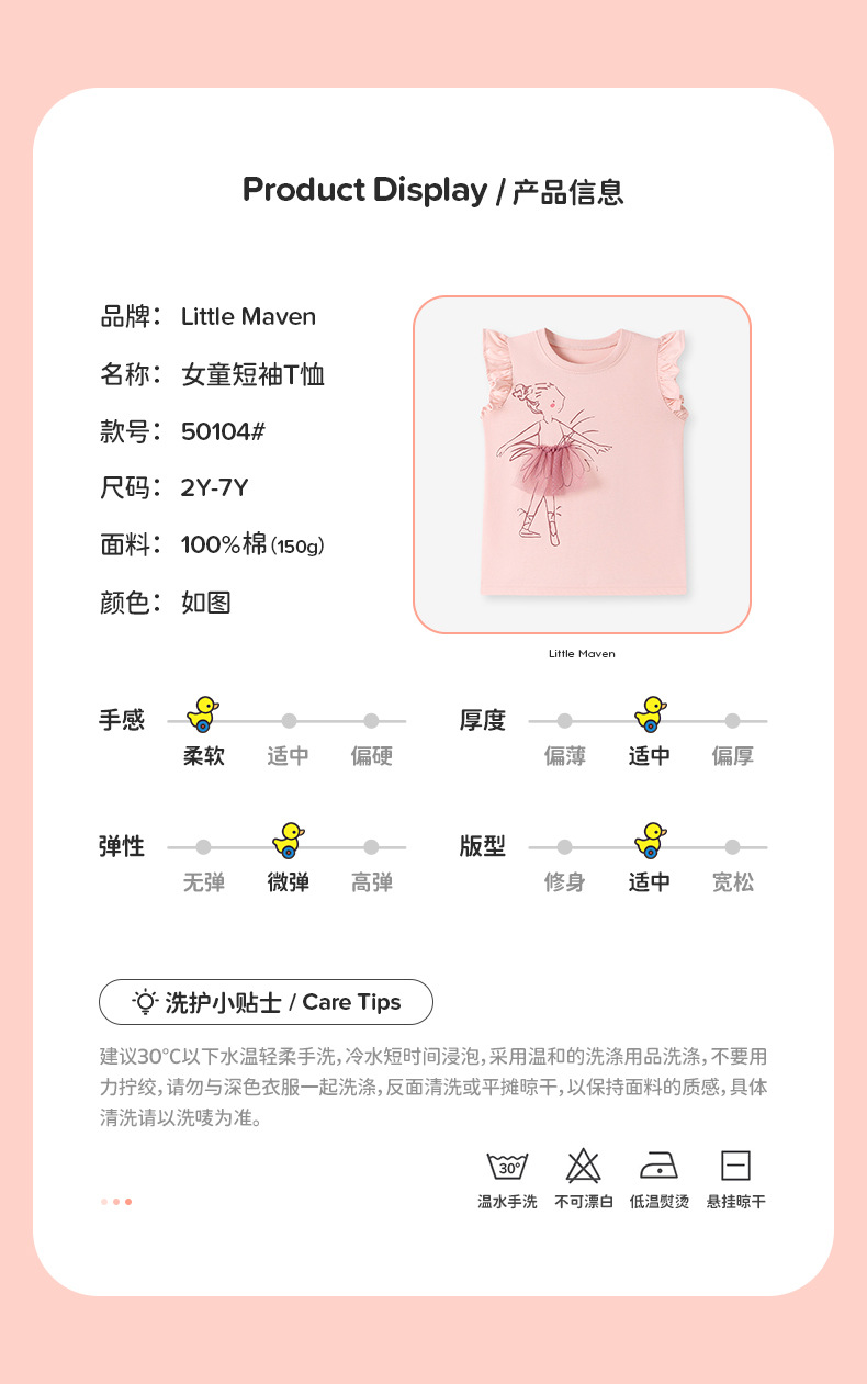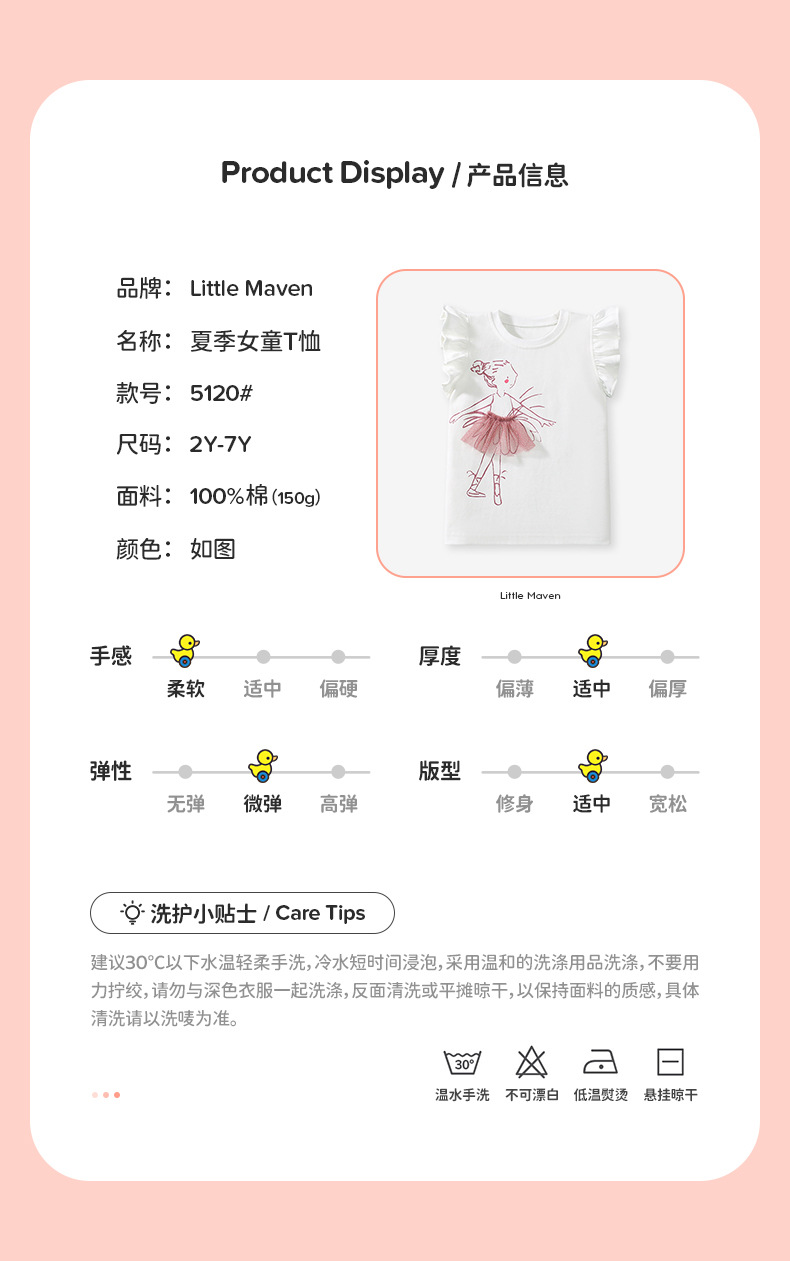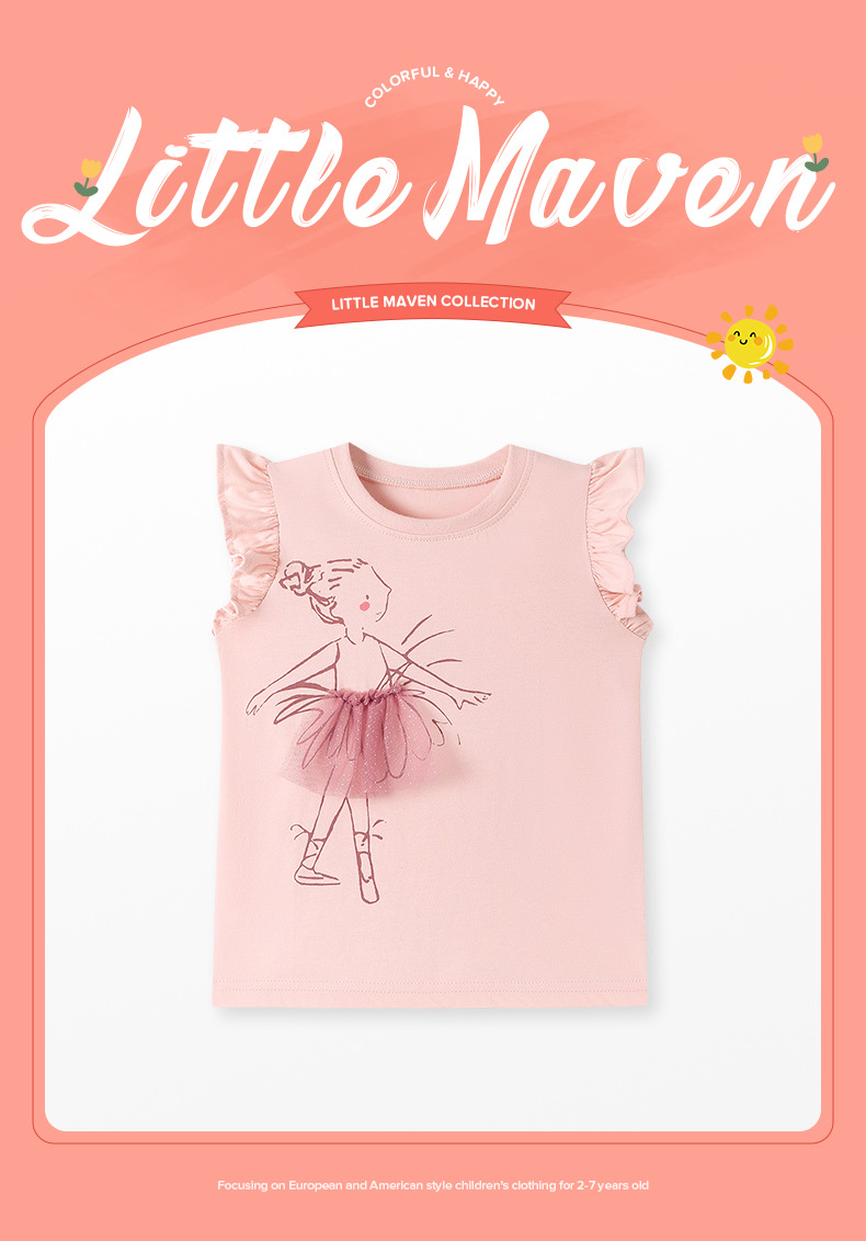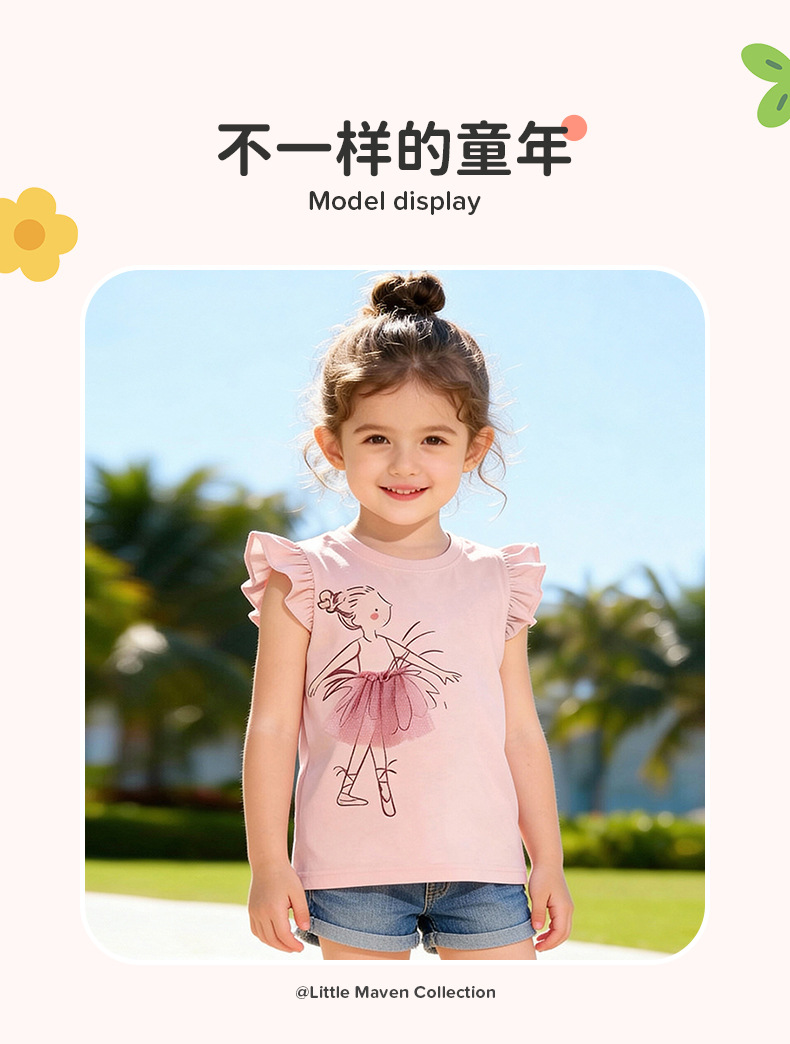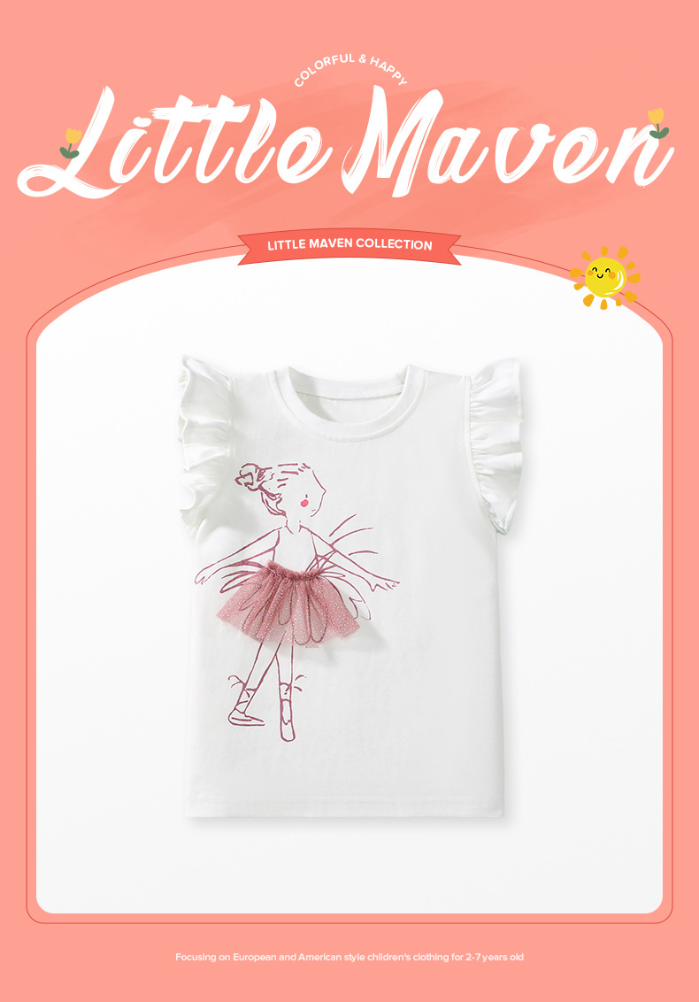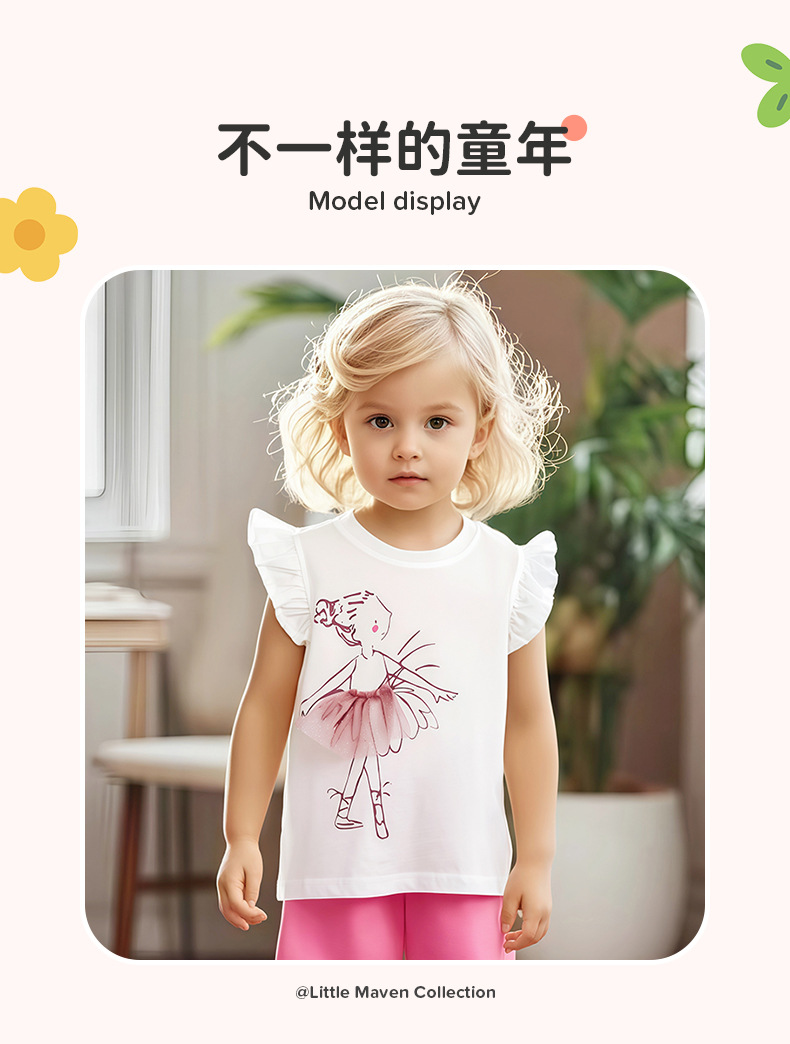 Little maven 여름 신작 아동 티셔츠 2025 유럽과 미국의 입체 패턴 순수 코튼 소녀 티셔츠