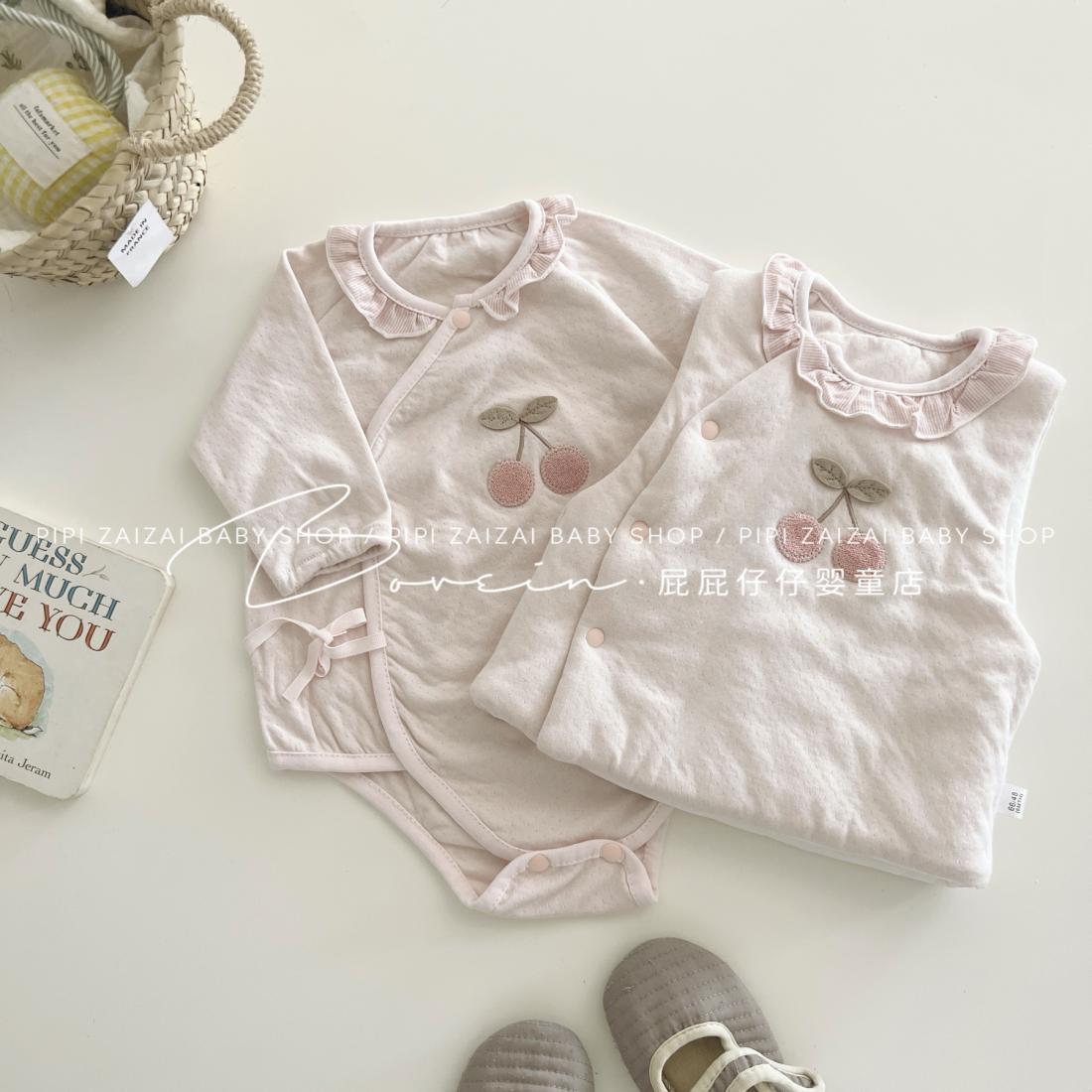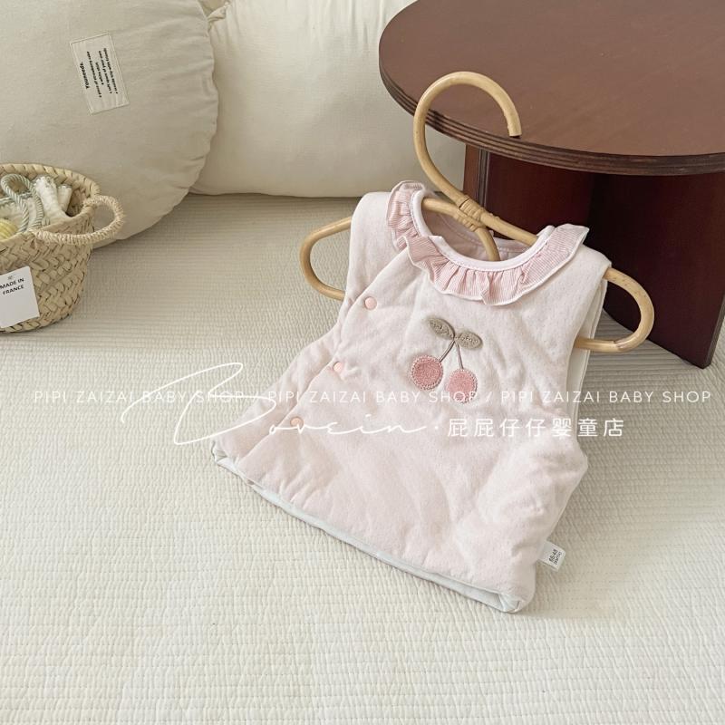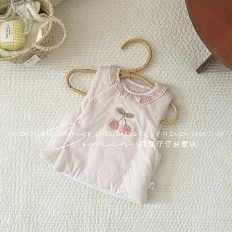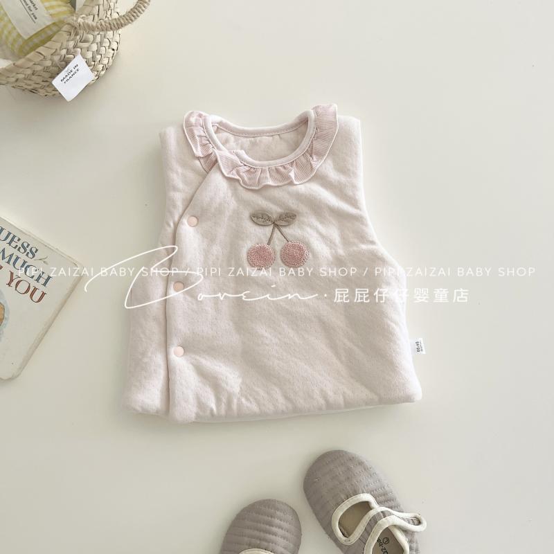 가을과 겨울 아기 조끼 소녀의 면화 패딩 외국식 아기의 2 색 자수 체리 조끼 웨이스트 코트 0204A100