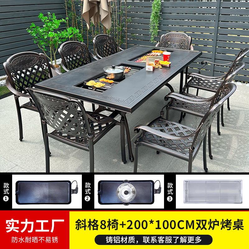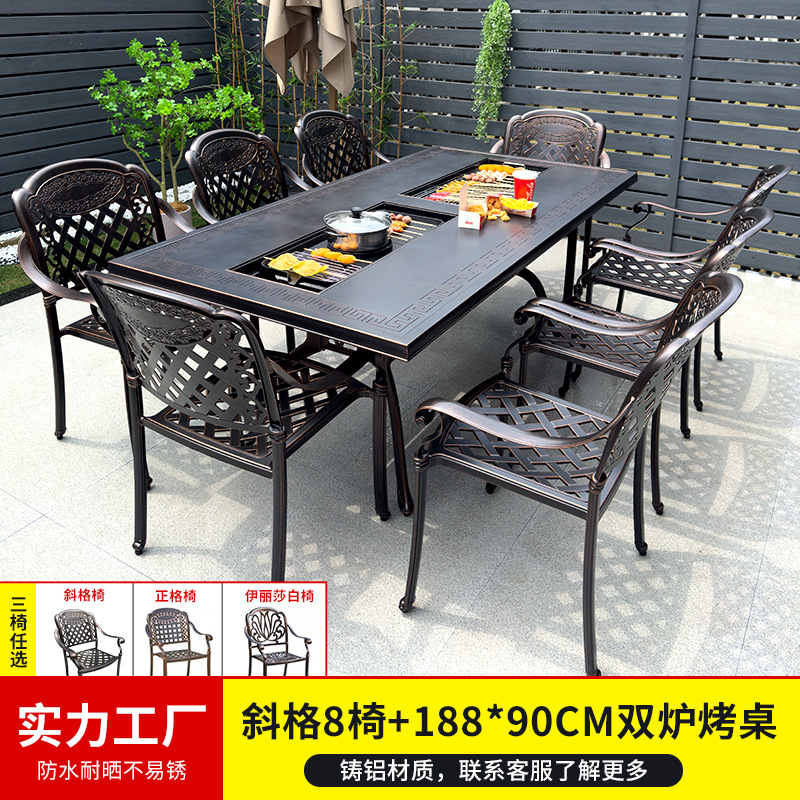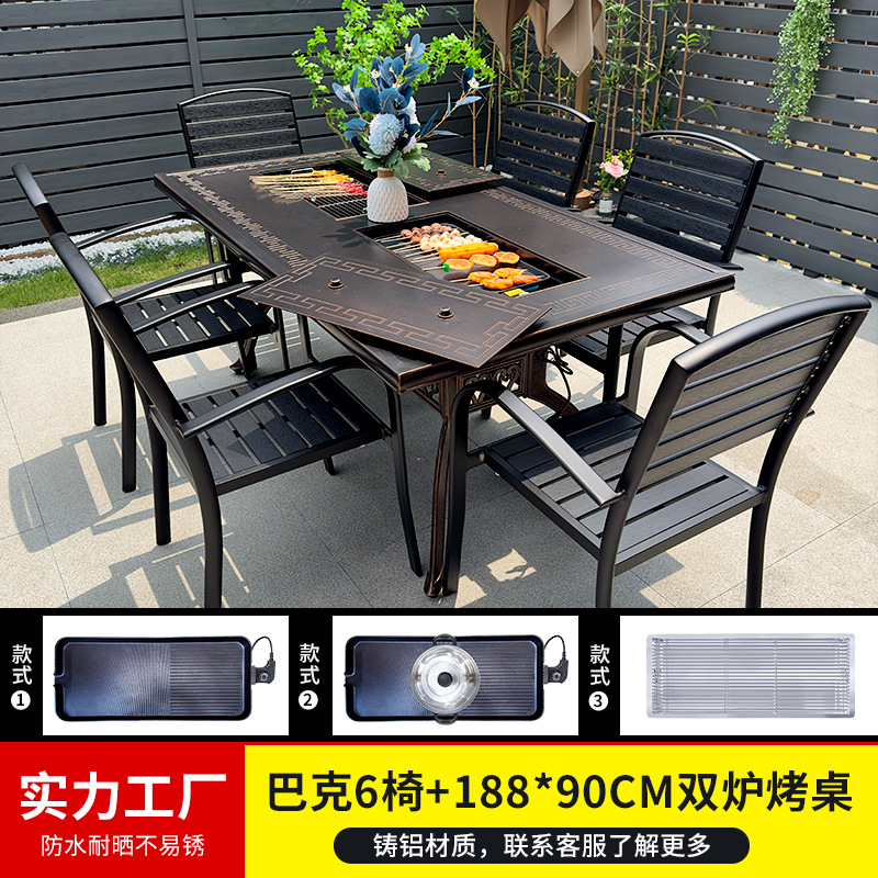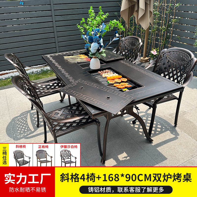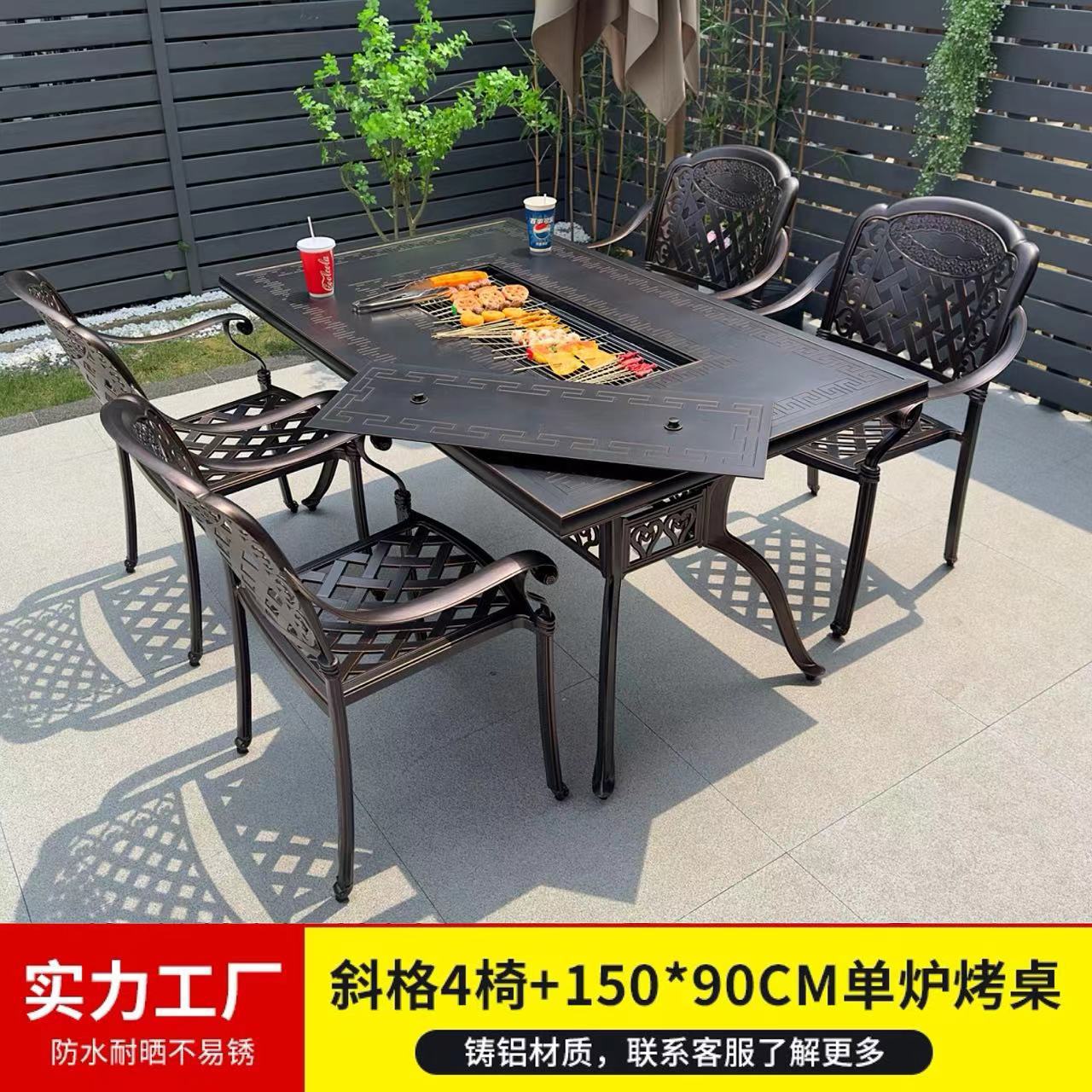 바베큐 테이블과 의자, 전기 그릴, 숯불구이, 정원, 빌라, 난로 주변 차 마시는 테이블과 의자, 주조 알루미늄 테이블과 의자, 새로운 중국 스타일