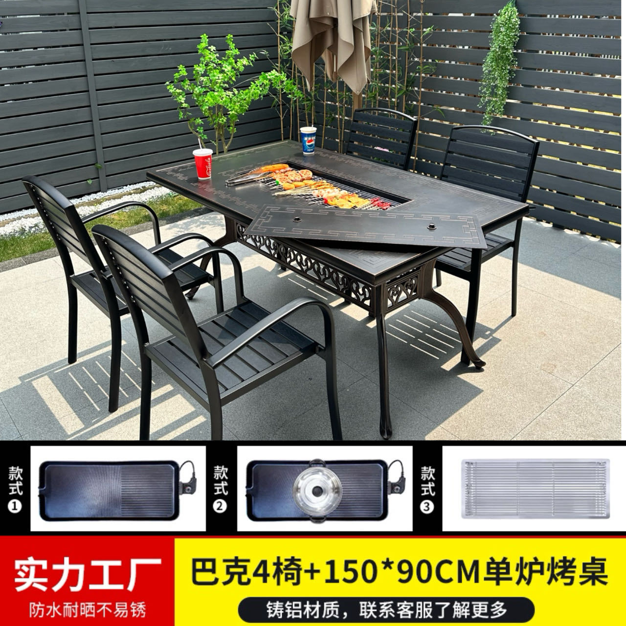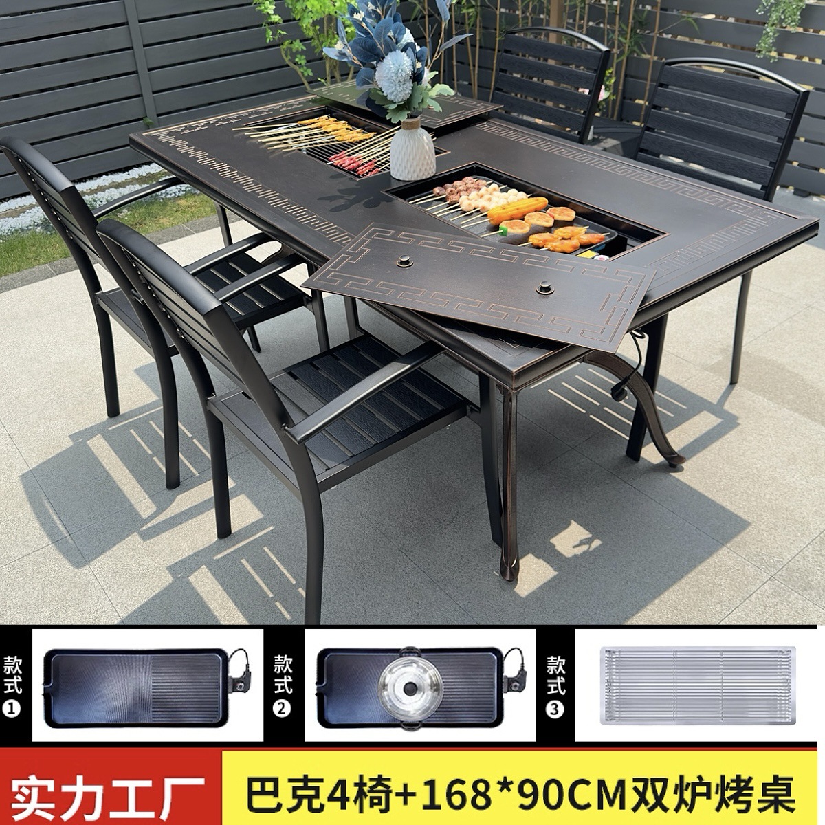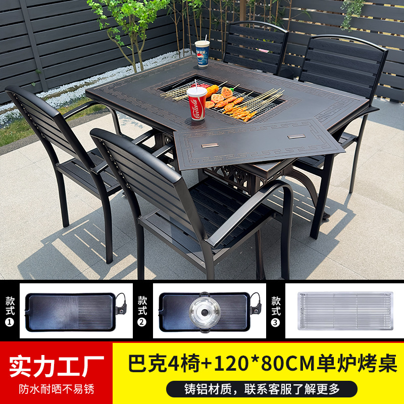 바베큐 테이블과 의자, 전기 그릴, 숯불구이, 정원, 빌라, 난로 주변 차 마시는 테이블과 의자, 주조 알루미늄 테이블과 의자, 새로운 중국 스타일스토어 가기