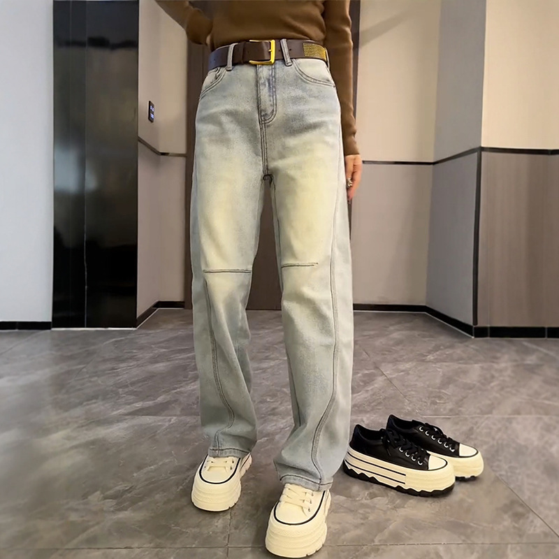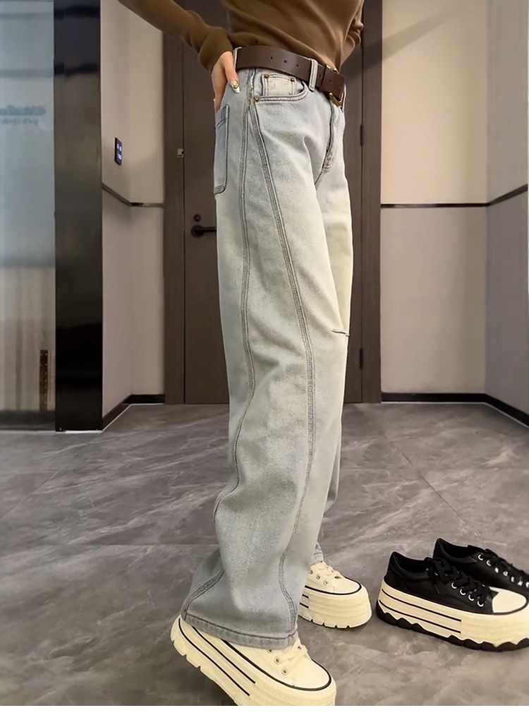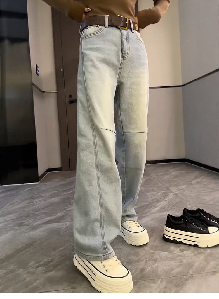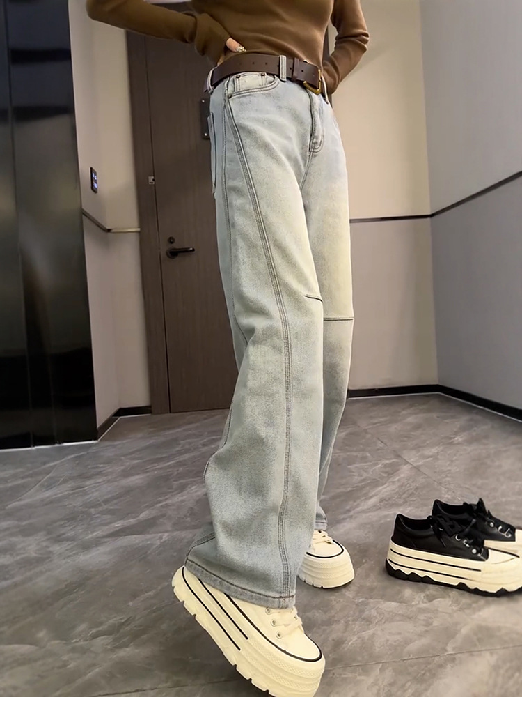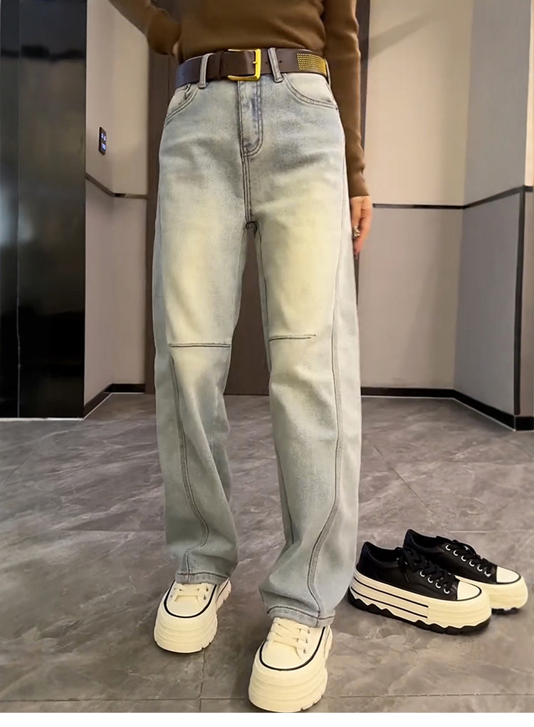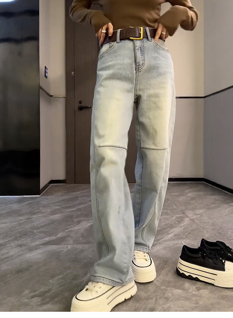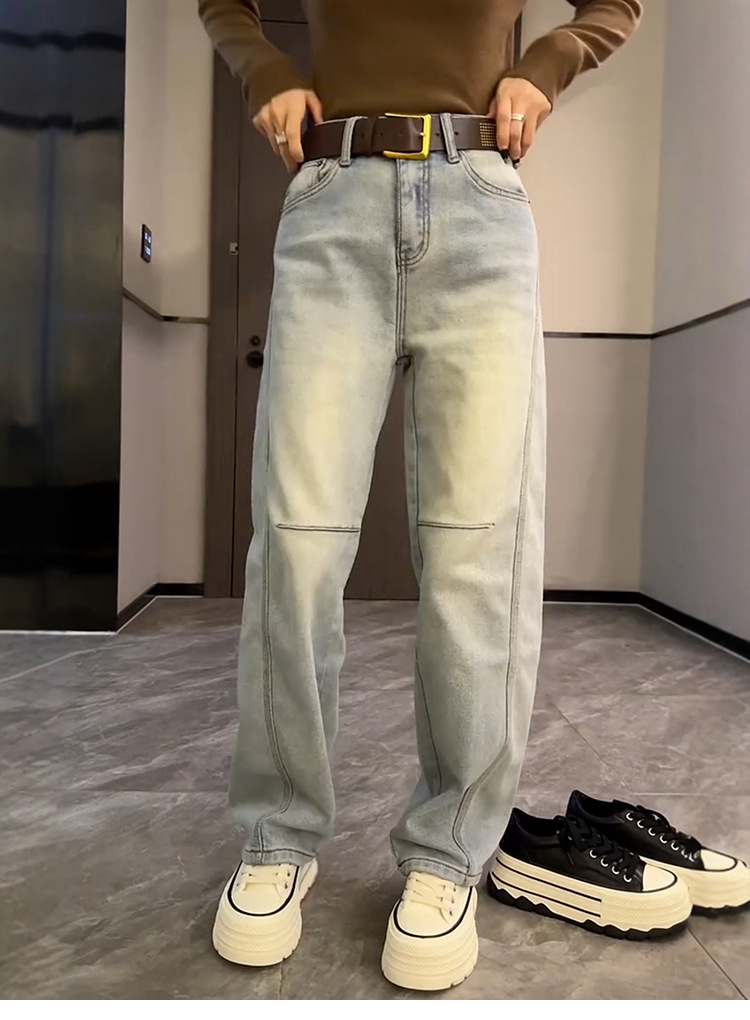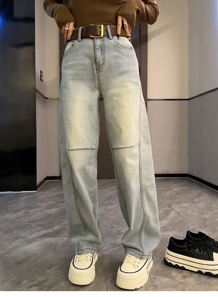 플러스 사이즈 기모 두꺼운 넓은 다리 청바지 여성의 가을과 겨울 2024 새로운 통통녀 슬리밍 배 모양의 몸 마체 바지스토어 가기