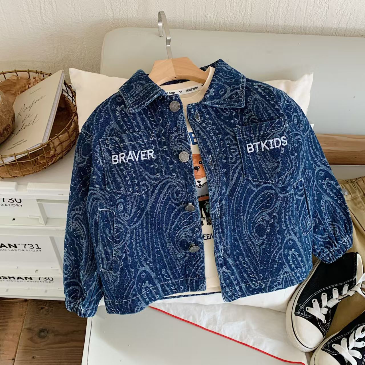 올매치 아우터웨어 재킷 가을 신식 데님 재킷 어린이 가을 겨울 기모 따뜻한 서양식