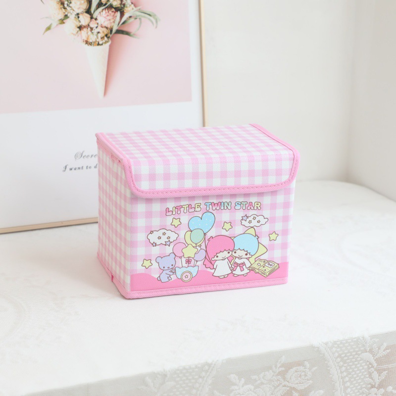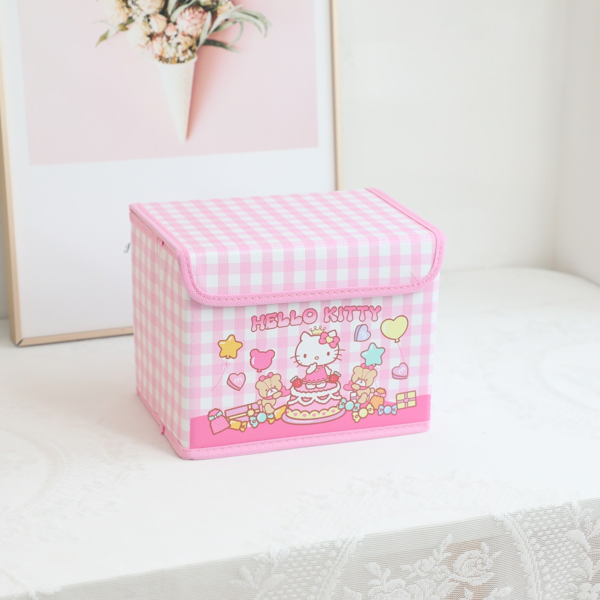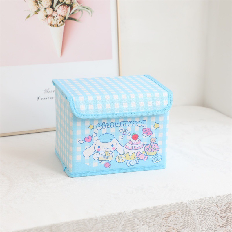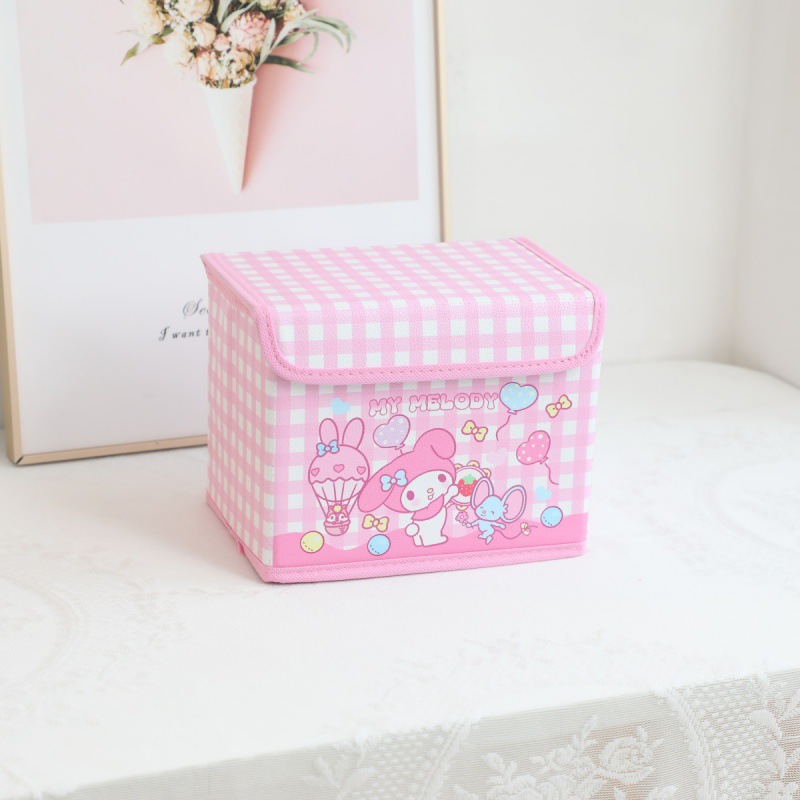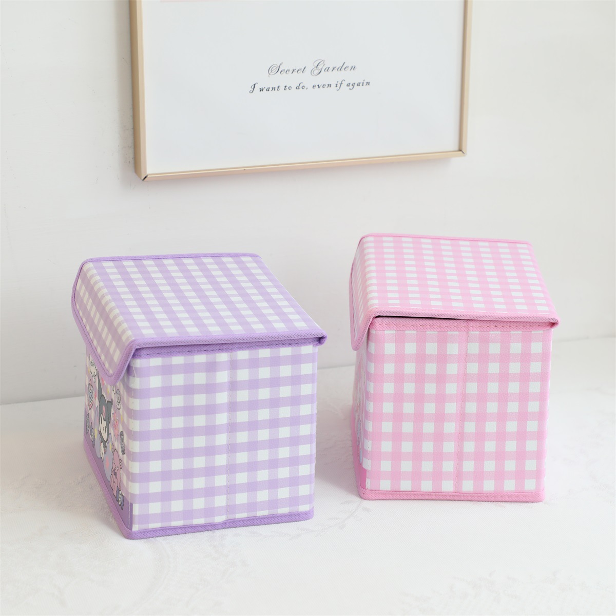 귀여운 소녀 심장 격자 무늬 만화 PU 방진 데스크탑 화장품 보관 상자 접이식 기숙사 잡화 상자스토어 가기