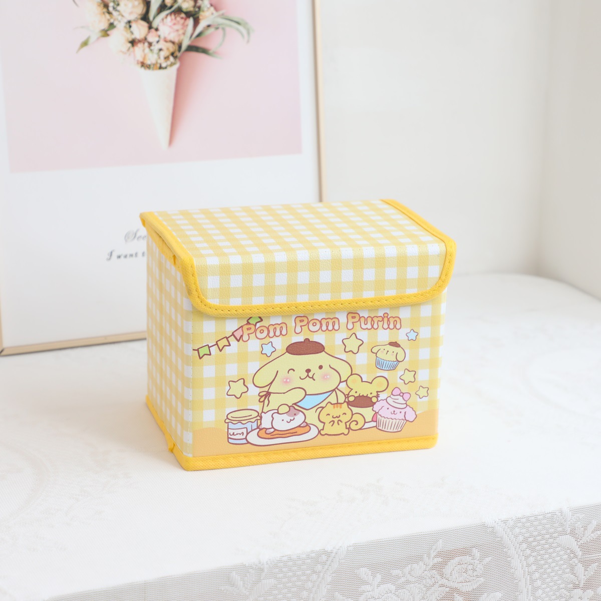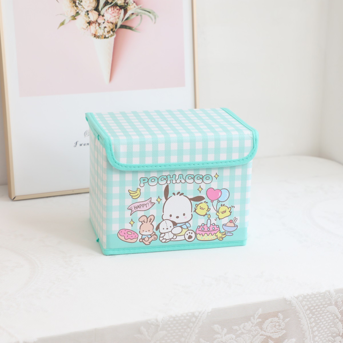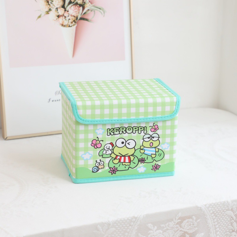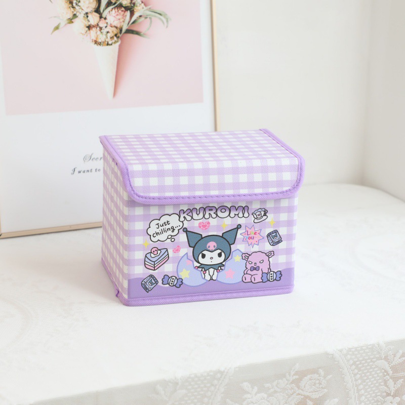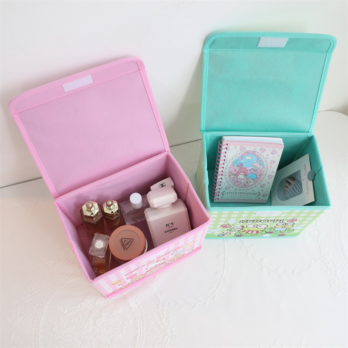 귀여운 소녀 심장 격자 무늬 만화 PU 방진 데스크탑 화장품 보관 상자 접이식 기숙사 잡화 상자스토어 가기