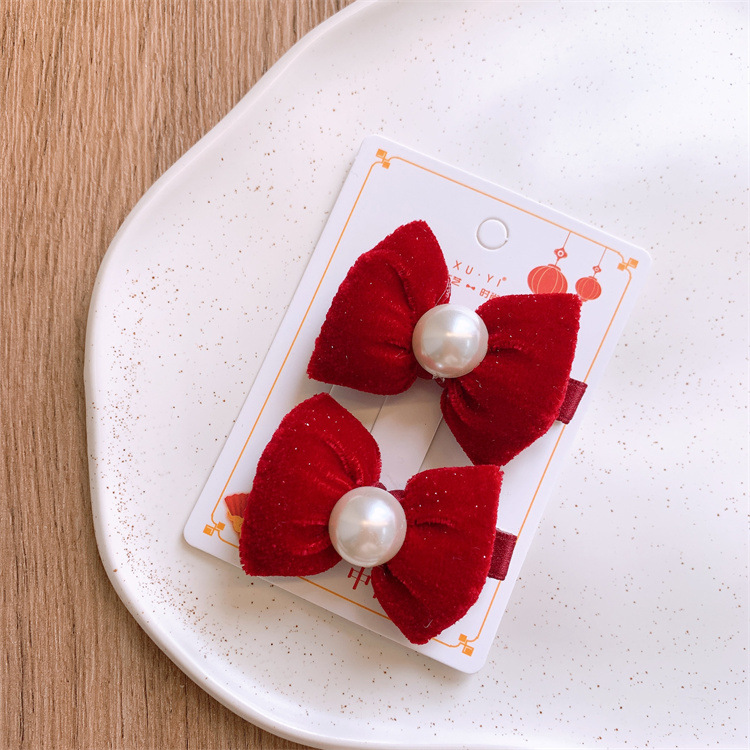 어린이 빨간 진주 플란넬 코튼 활 머리띠 여아 머리 넥타이 고무 텐돈 헤어 밴드 쌍 머리핀 머리 밧줄