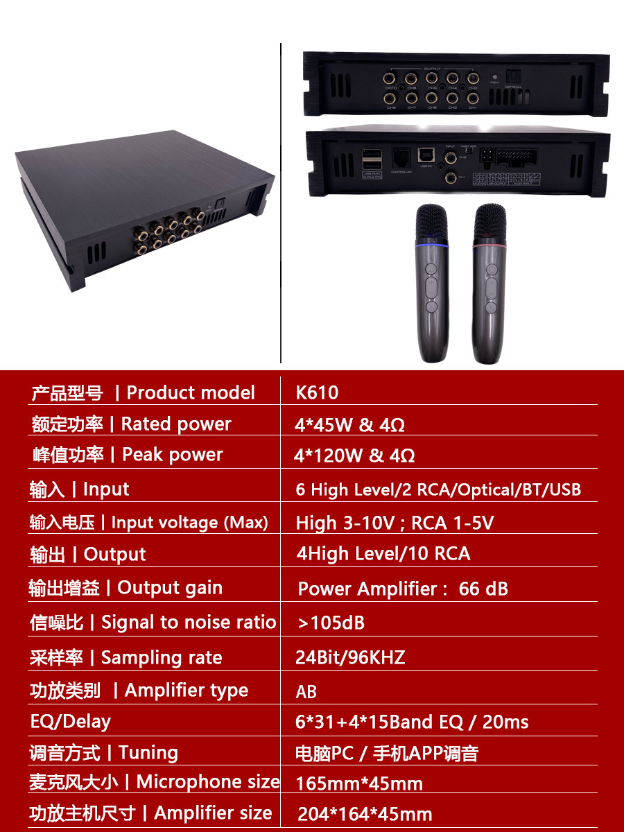 도매 고출력 10 방향 특수 자동차 DSP 앰프 자동차 K 노래 엔터테인먼트 오디오