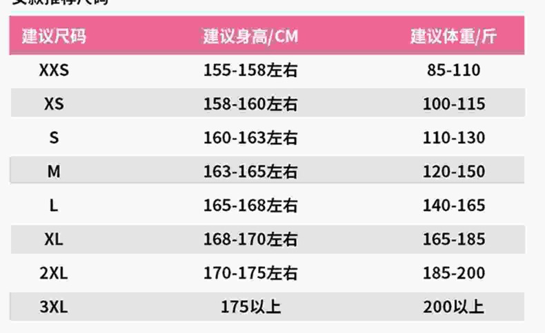 • 2XL 여성용 모델-[권장: 185-200]