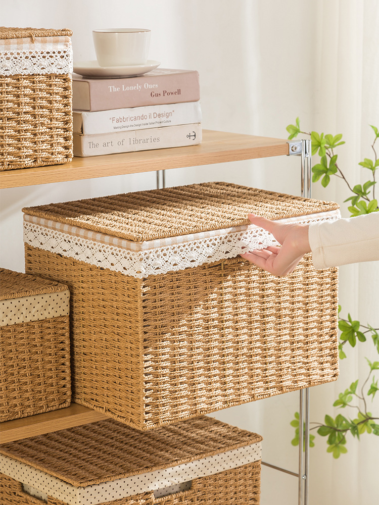 저장 상자 가정용 모조 등나무 짚 일본식 짠 보관 바구니 장난감 간식 의류 잡화 분류 보관 타오 치스토어 가기