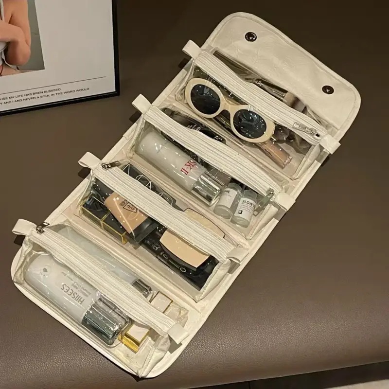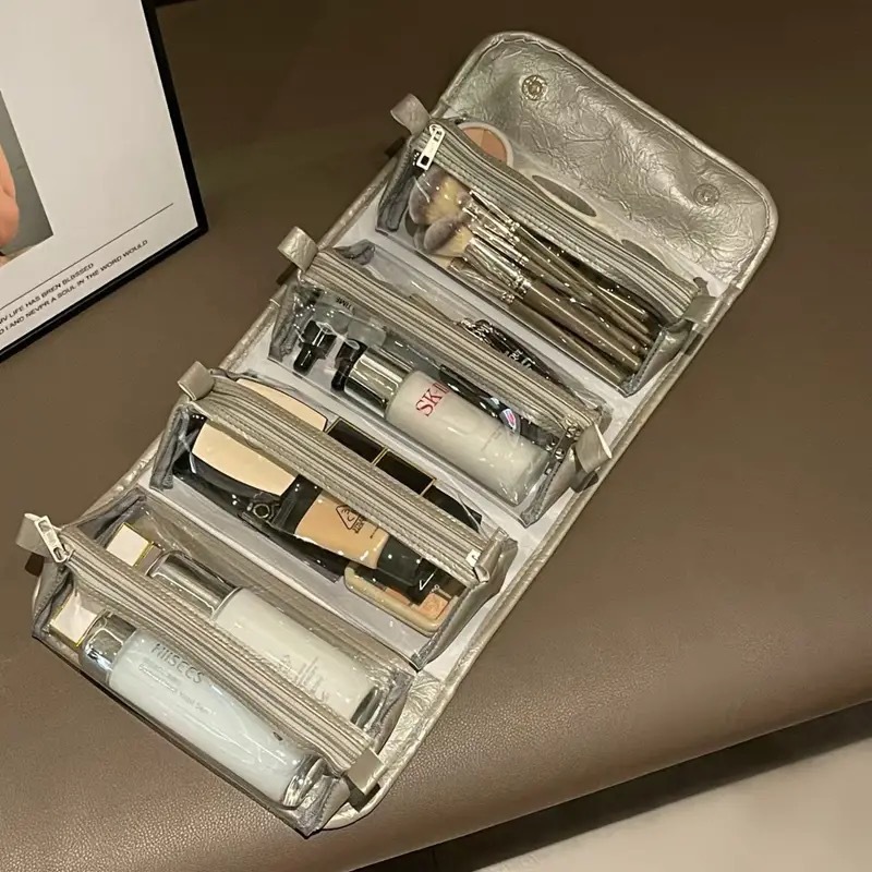 새로운 탈착식 접이식 화장품 가방 크로스보더 대용량 보관 가방 여성용 휴대용 여행 및 외출 휴대용 4-in-one
