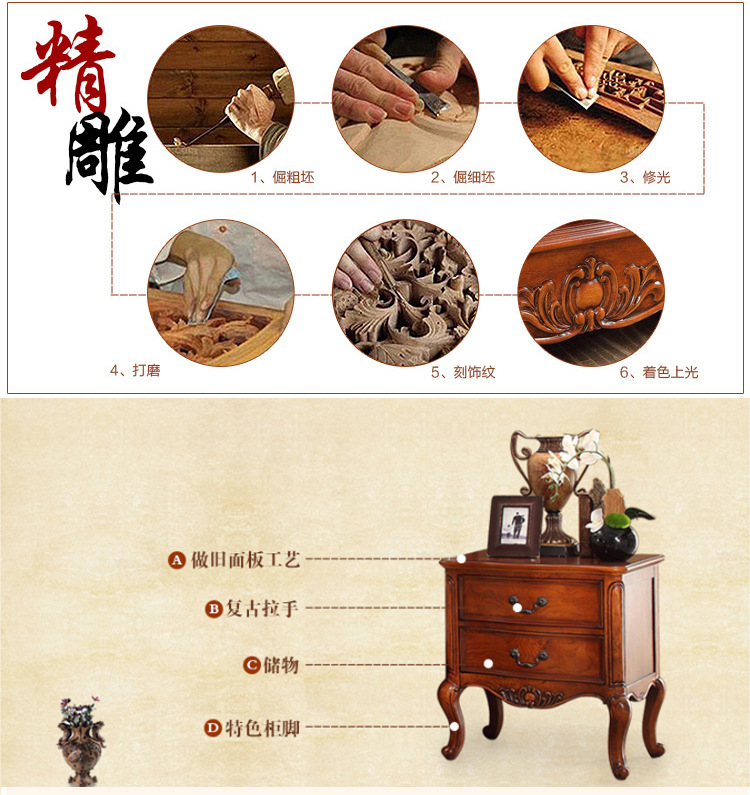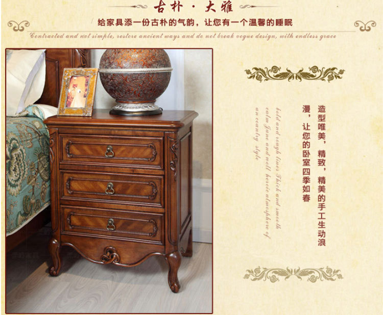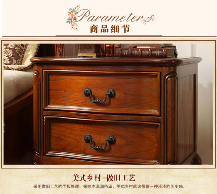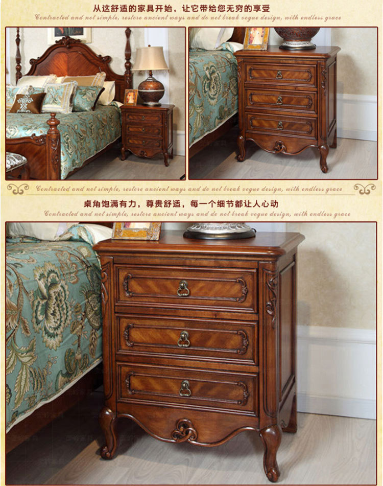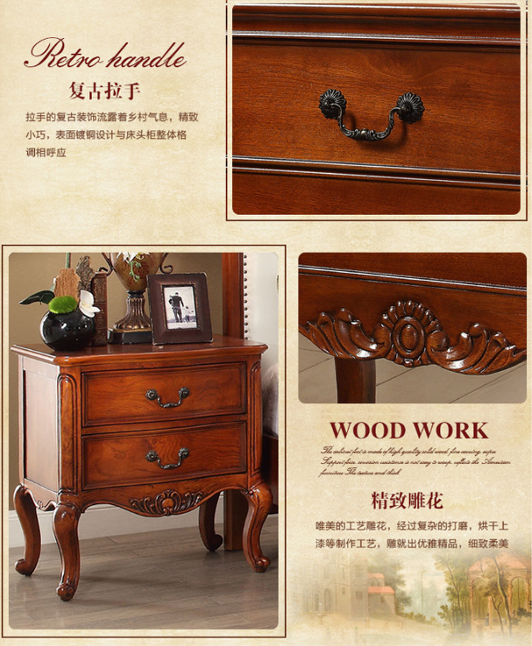 미국 스타일의 단단한 나무 침대 옆 테이블 유럽 스타일 침대 옆 캐비닛 침실 2 개의 서랍 캐비닛 저장 캐비닛 다기능 조각 3 개의 서랍 캐비닛