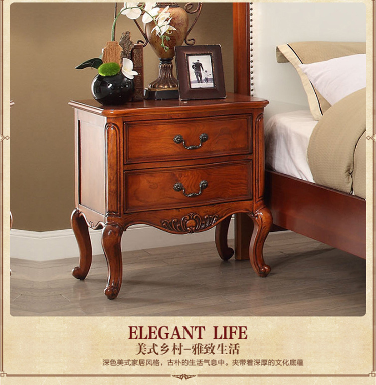 미국 스타일의 단단한 나무 침대 옆 테이블 유럽 스타일 침대 옆 캐비닛 침실 2 개의 서랍 캐비닛 저장 캐비닛 다기능 조각 3 개의 서랍 캐비닛스토어 가기