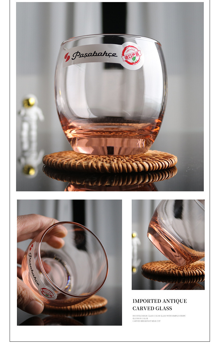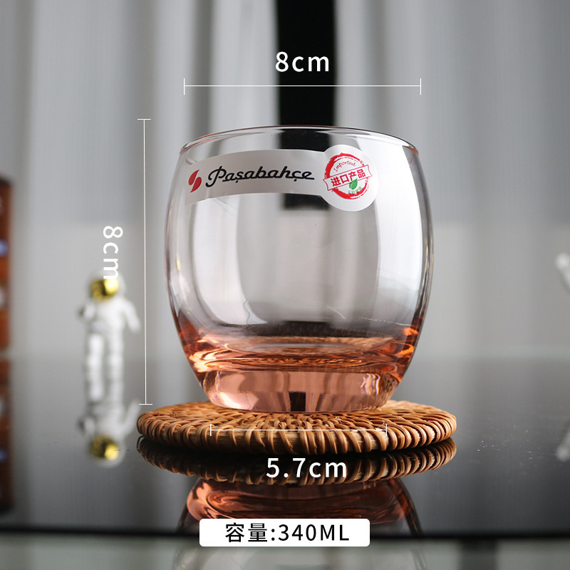 파샤 수입 Mouthwash 컵 무연 투명 컬러 유리 음료 물 라운드 빅 벨리 밀크 컵 티 컵 맥주 컵