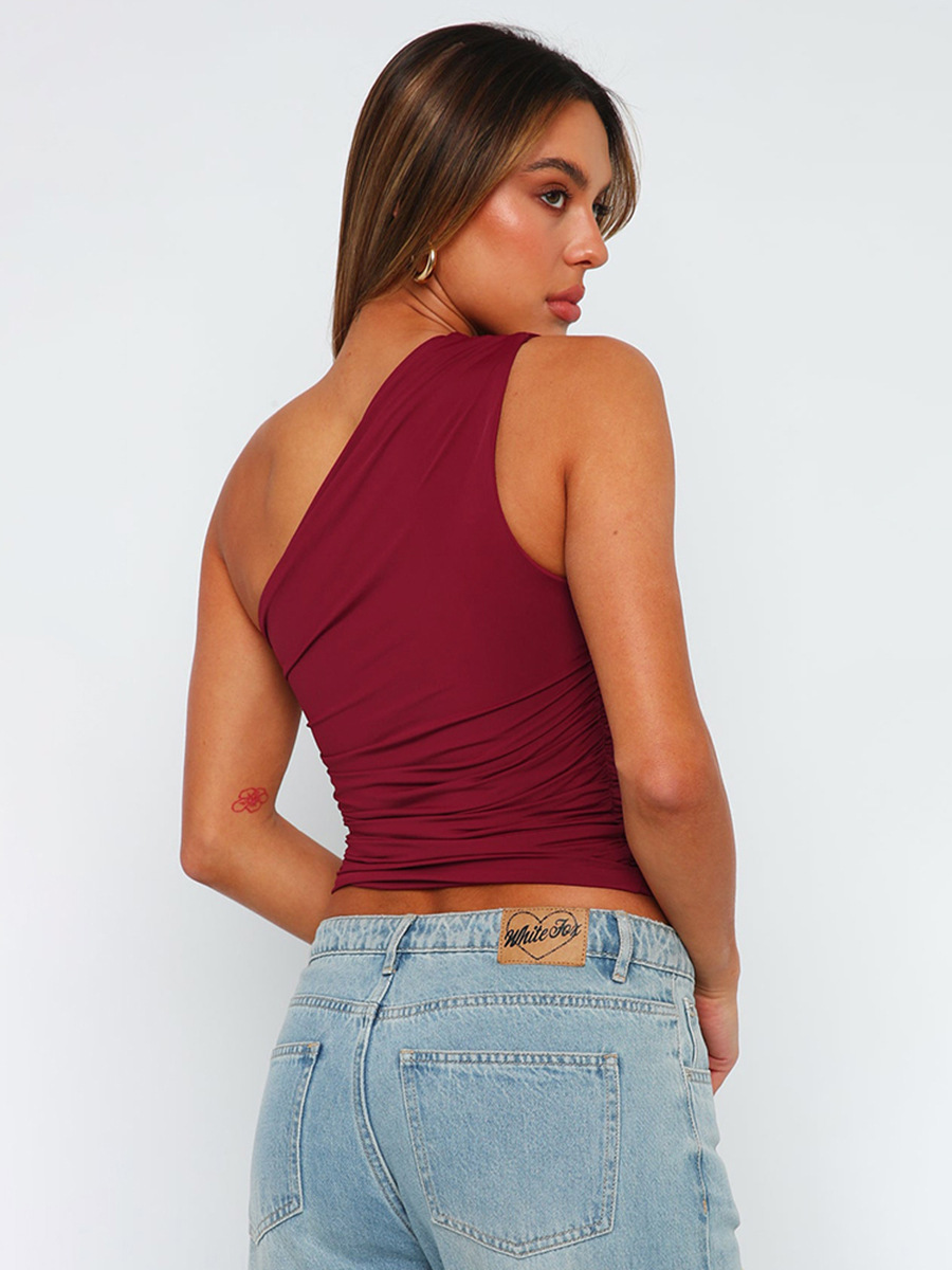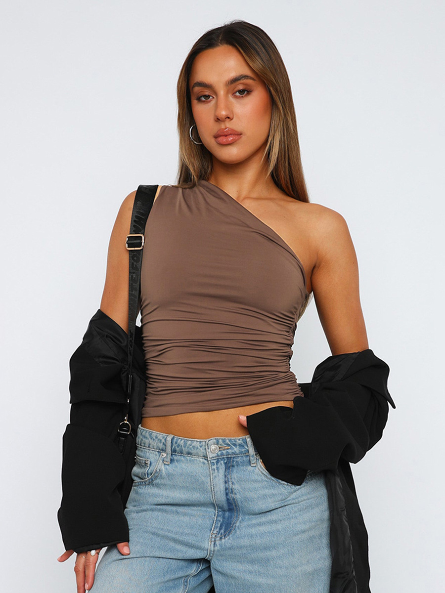 AYJ24S016 크로스보더 여성 유럽과 미국의 섹시한 비스듬한 어깨 주름진 타이트한 조끼, 우아한 튜브탑 겉옷