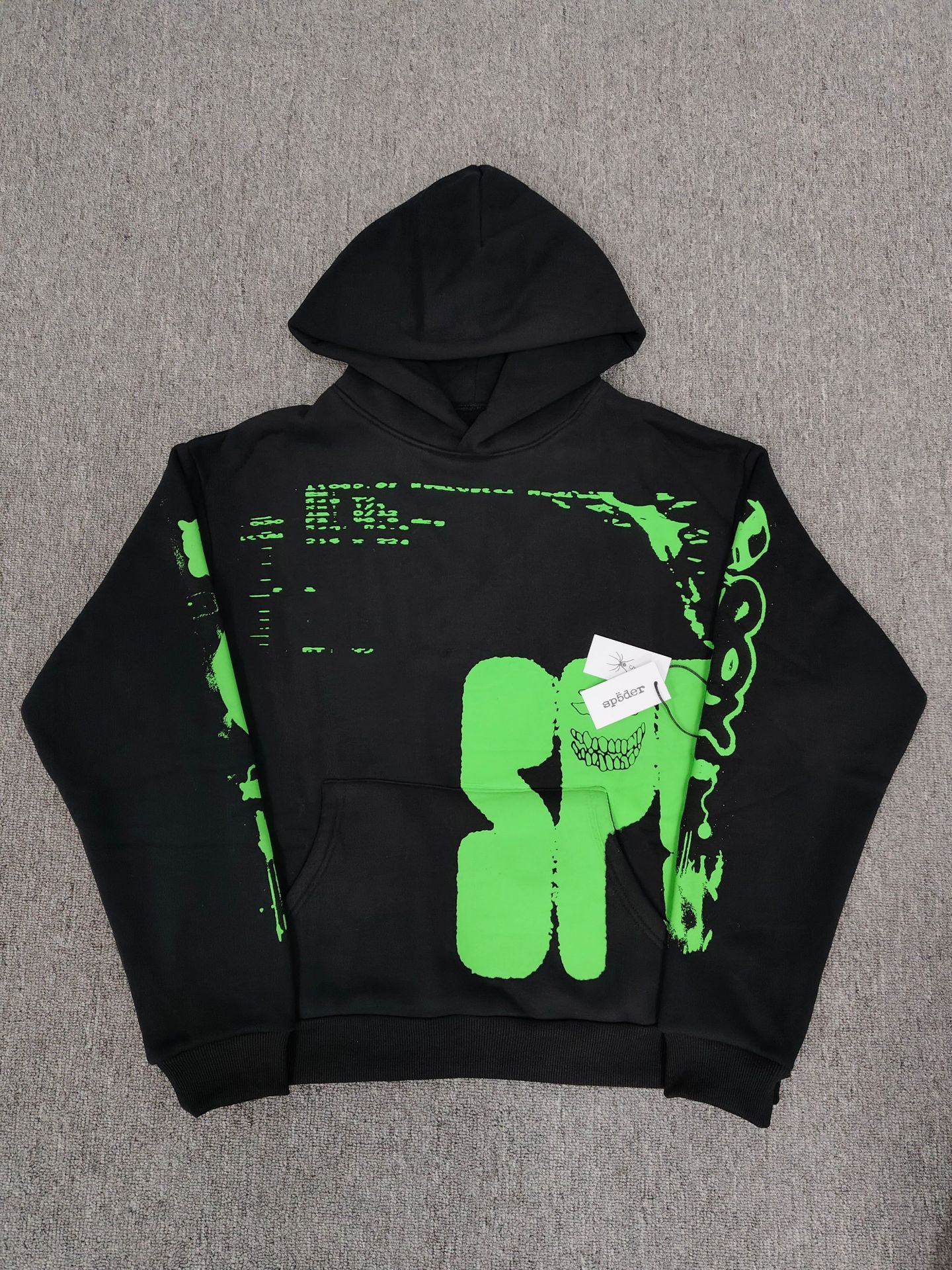 해외 오리지널 블록버스터 450G 두꺼운 케이크 벨벳 스웨터 후드 남성 폼 프린트 스파이더 Sp5der 후드