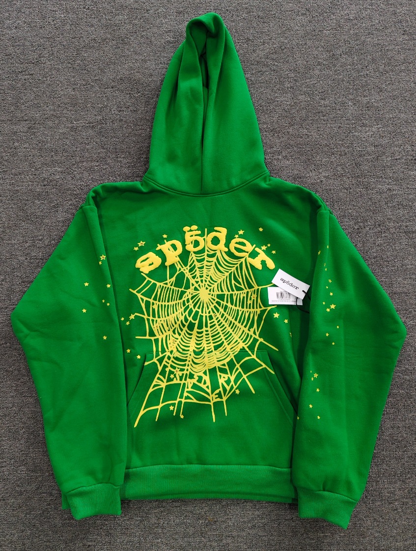 해외 오리지널 블록버스터 450G 두꺼운 케이크 벨벳 스웨터 후드 남성 폼 프린트 스파이더 Sp5der 후드스토어 가기