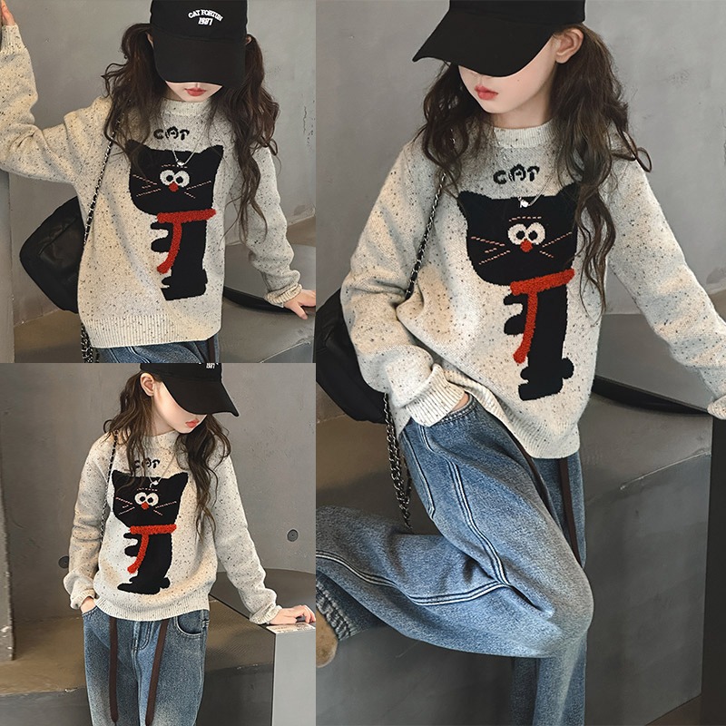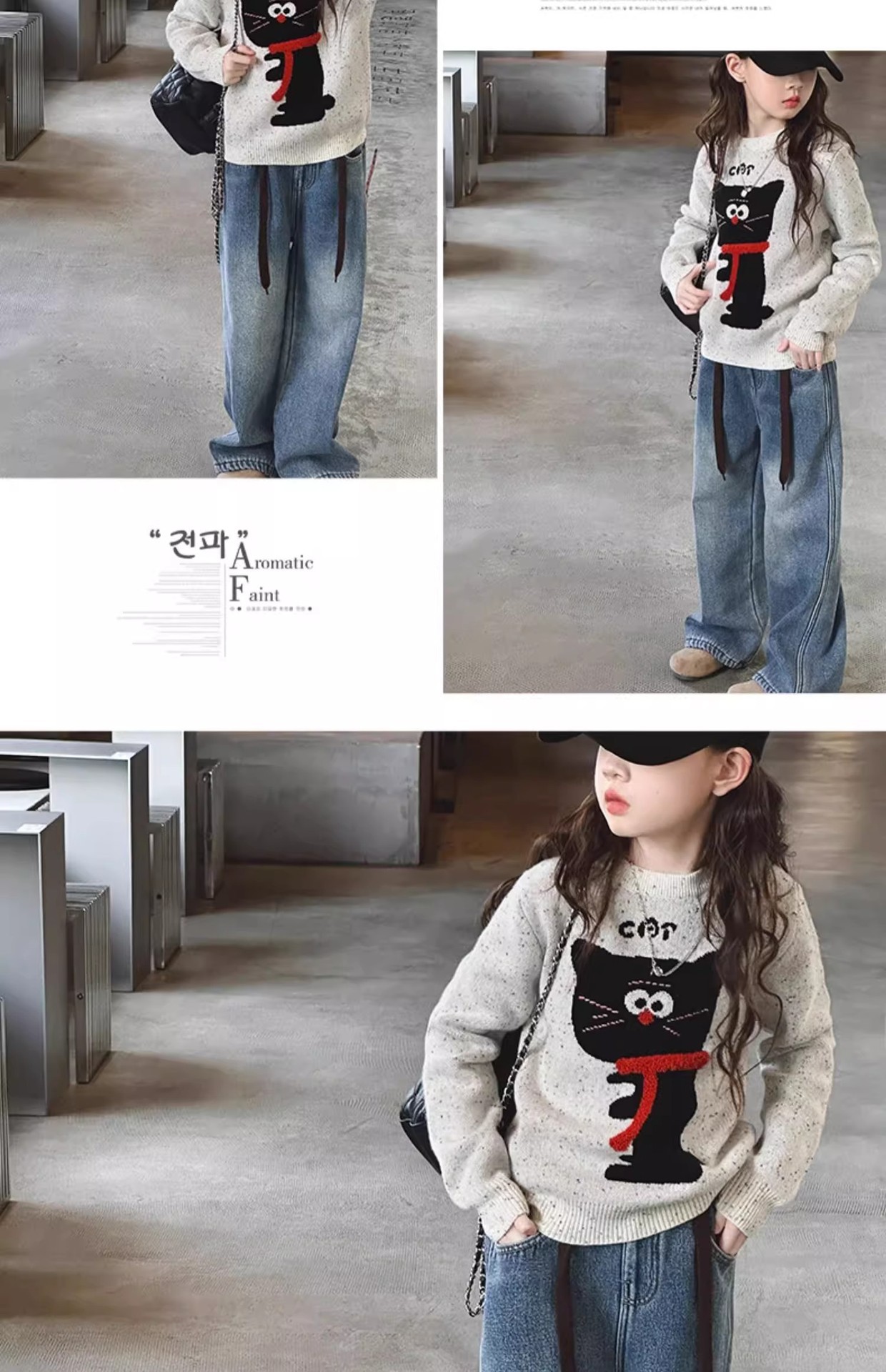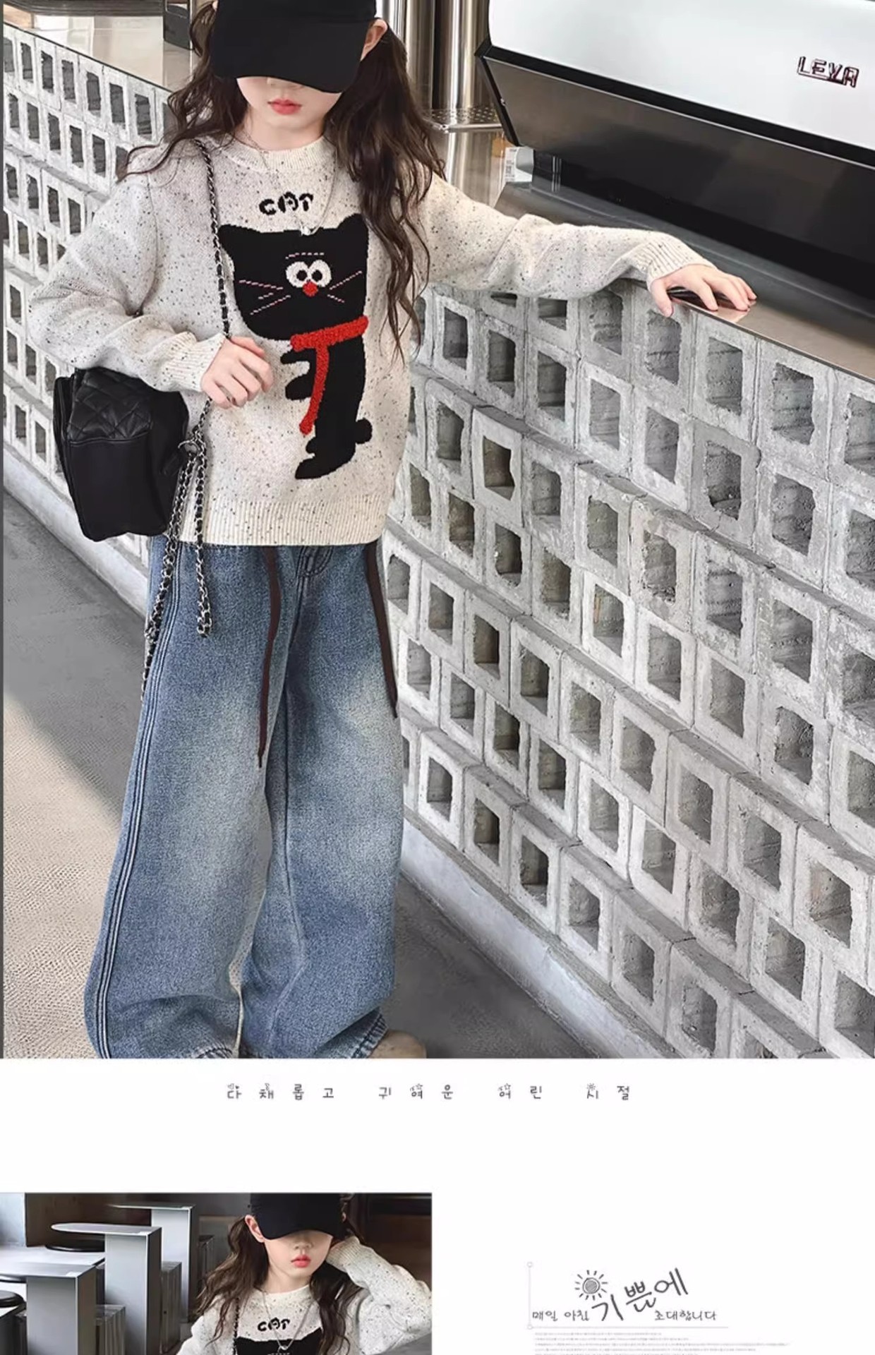 소녀 스웨터 가을과 겨울 2024 새로운 스타일 서양식 소녀 니트 풀오버 스웨터 어린이 겨울 니트 탑스토어 가기