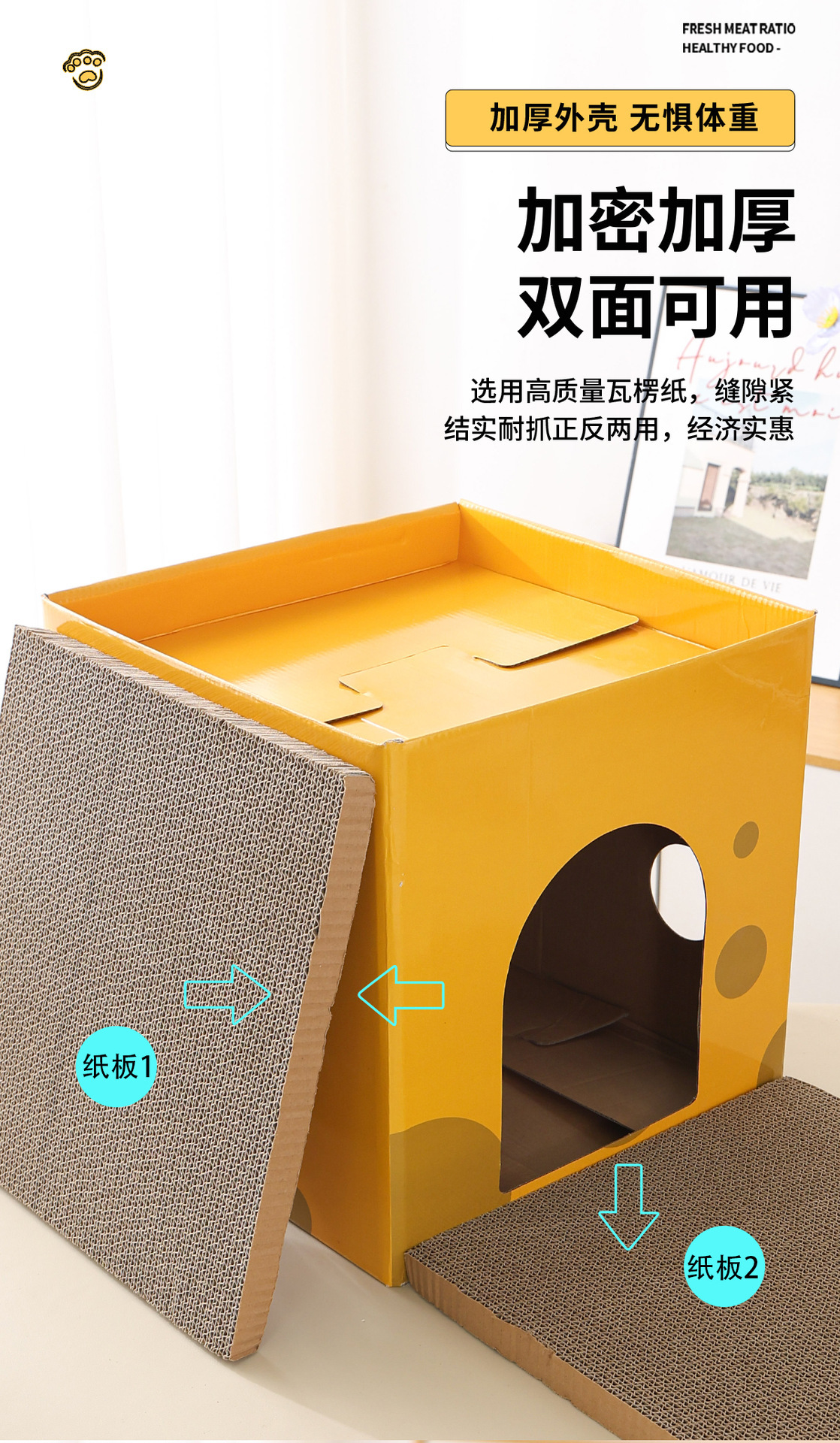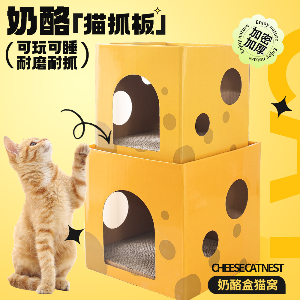 고양이 스크래치 보드 둥지 더블 레이어 스크래치 방지 내마모성 치즈 고양이 스퀘어 하우스 고양이 클라이밍 랙 카톤 하우스 애완 동물 용품 고양이 장난감스토어 가기