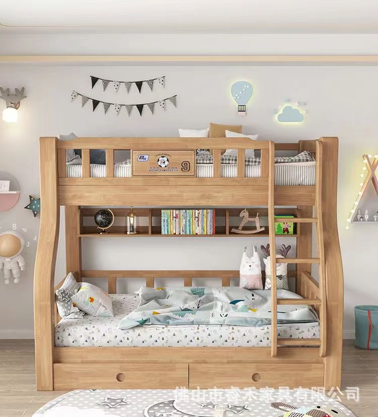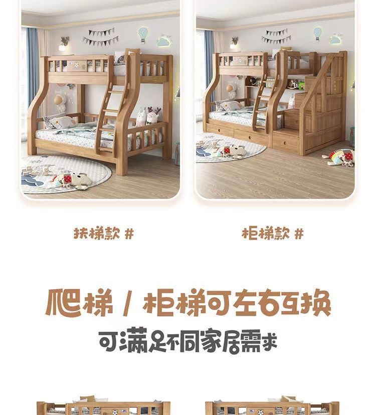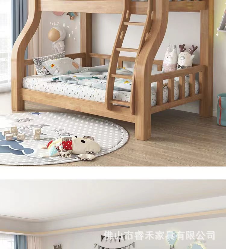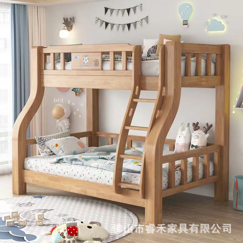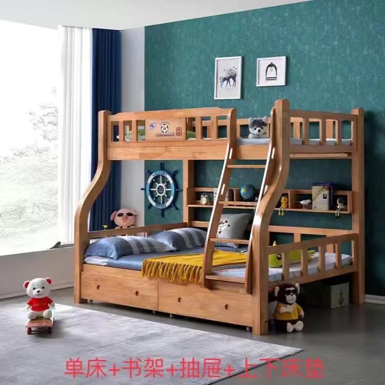 풀 솔리드 우드 하이 로우 침대 더블 레이어 간단한 두꺼운 어머니-아이 침대 가구 로그 2 층 어린이 침대 침대 침대 침대