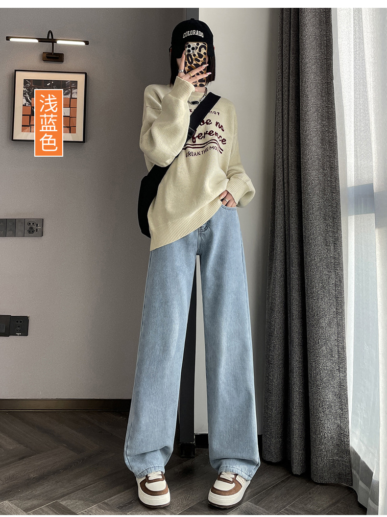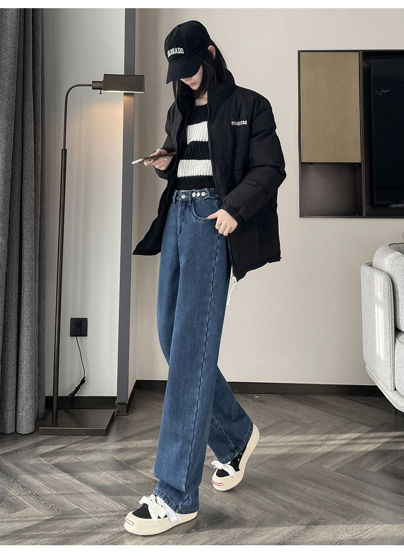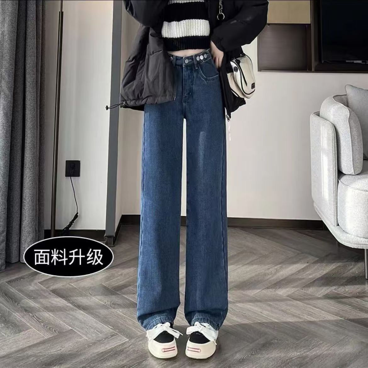 두꺼운 와이드 레그 청바지 여성용 2025 겨울 하이웨이스트 루즈핏 슬림핏 드레이프감 따뜻한 스트레이트 롱 팬츠 기모 바지