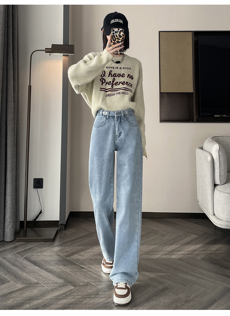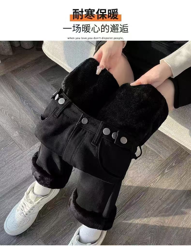 두꺼운 와이드 레그 청바지 여성용 2025 겨울 하이웨이스트 루즈핏 슬림핏 드레이프감 따뜻한 스트레이트 롱 팬츠 기모 바지스토어 가기