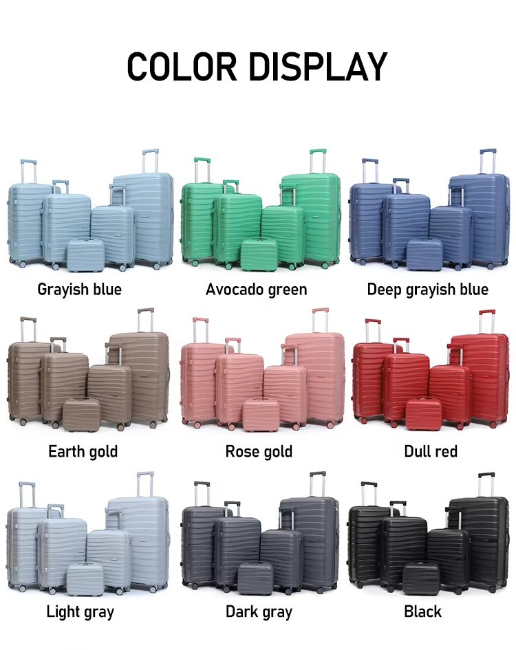 범용 바퀴가 달린 수하물 여행 트롤리 대용량 국경 간 탑승 케이스를 수출하는 PP 소재 5피스 여행 가방 세트스토어 가기