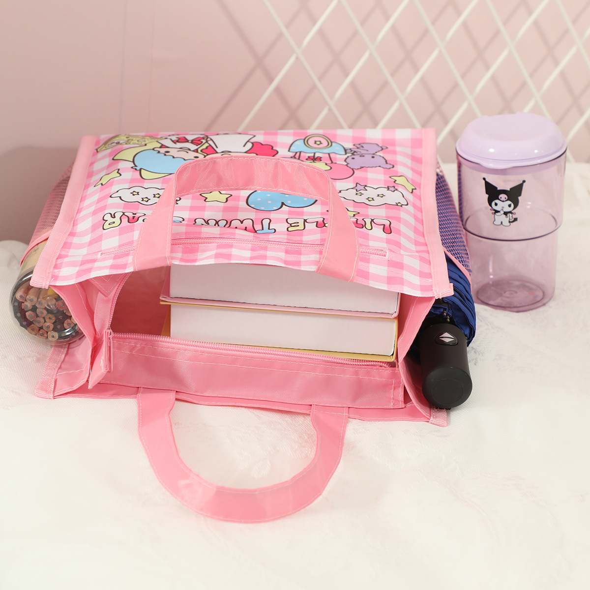 새로운 Kulomi 더블 레이어 보충 가방 아트 백 귀여운 만화 인쇄 학생 휴대용 보충 가방 대형 스몰 사이즈스토어 가기
