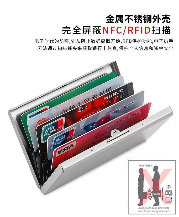 스테인레스 스틸 지갑 카드 홀더 도난 방지 브러시 금속 초박형 안티 데기 컴팩트 카드 케이스 신용 카드 홀더 남성