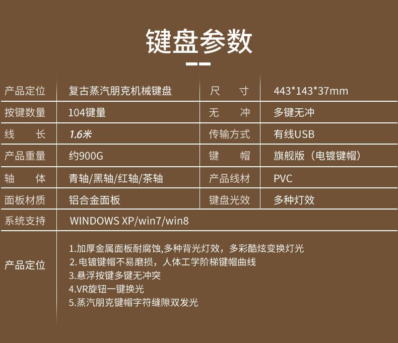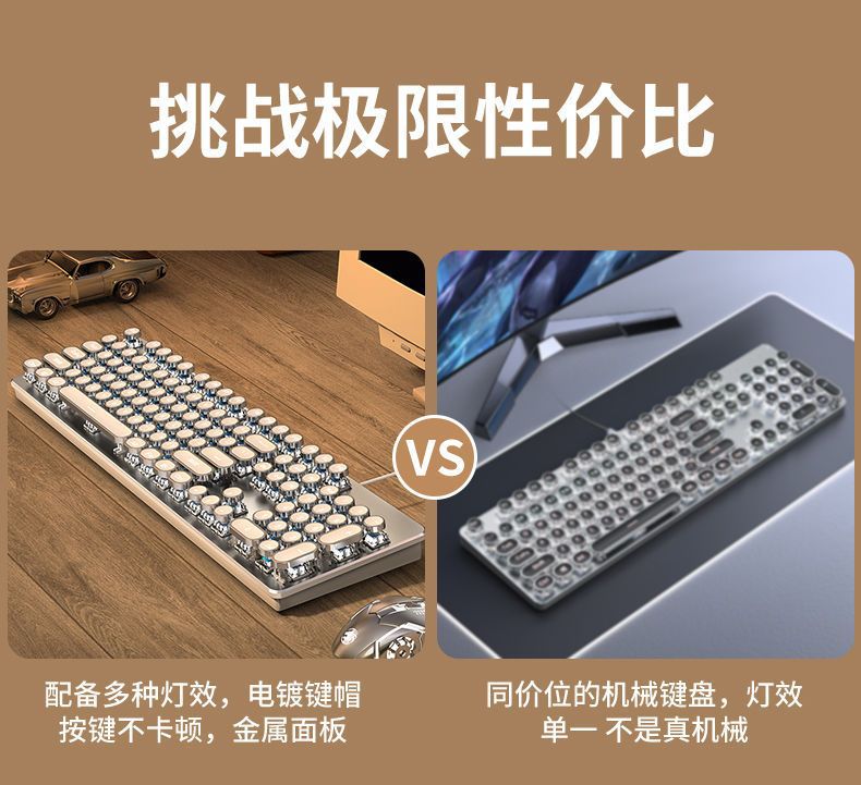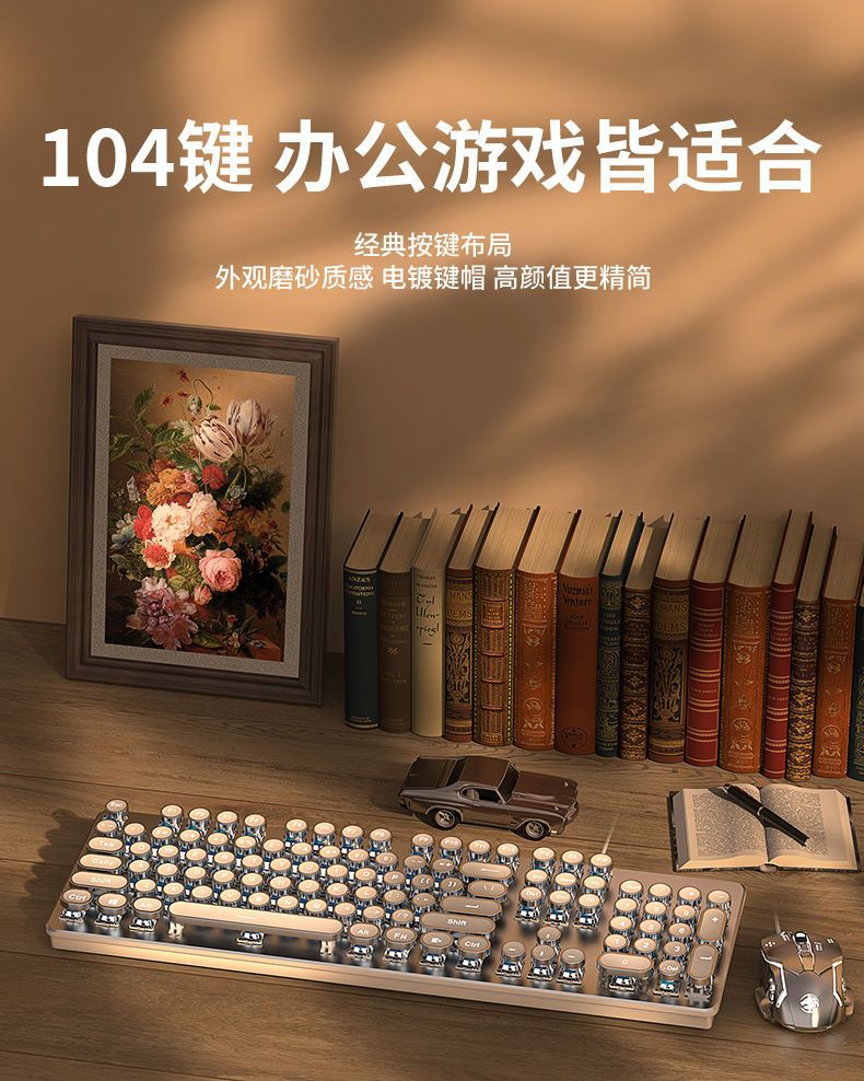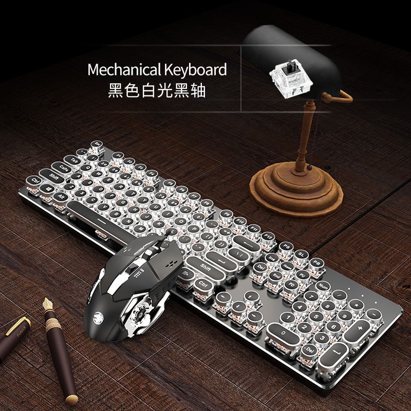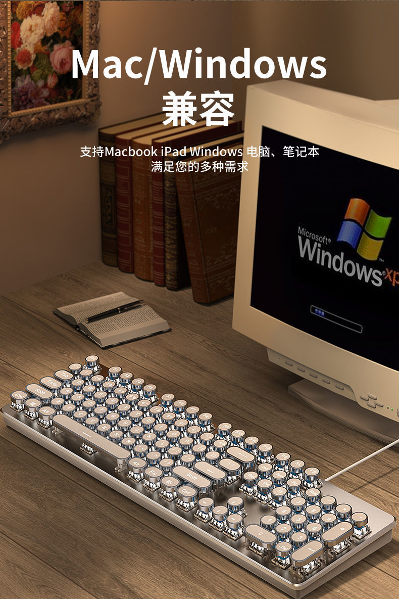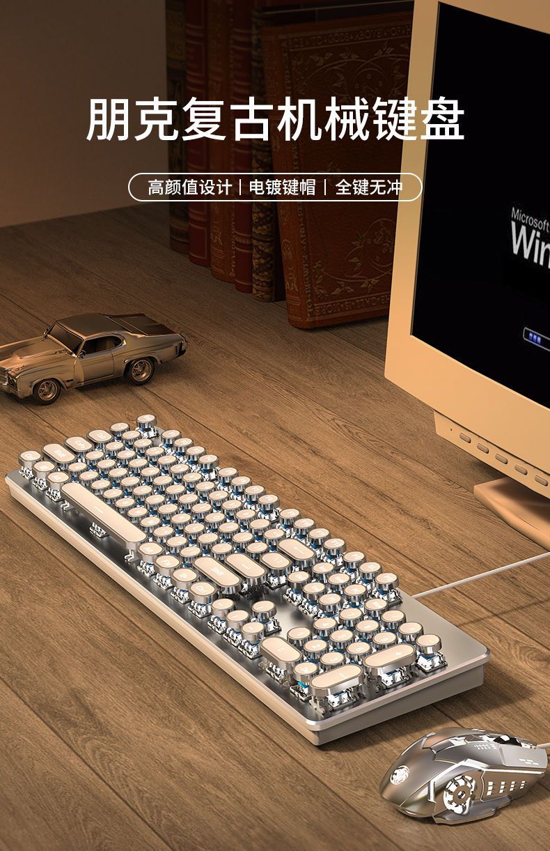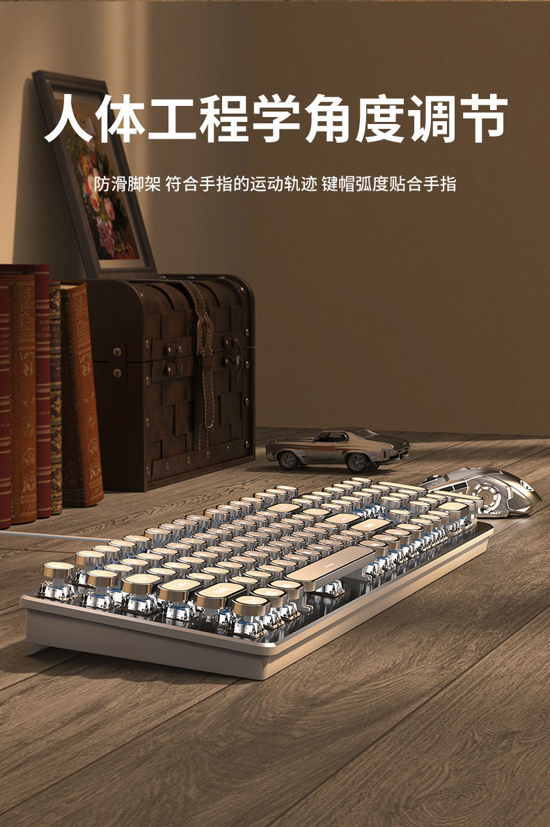 Steampunk 레트로 기계 키보드 소녀 귀여운 컴퓨터 외부 게임 사무실 케이블 스페셜스토어 가기