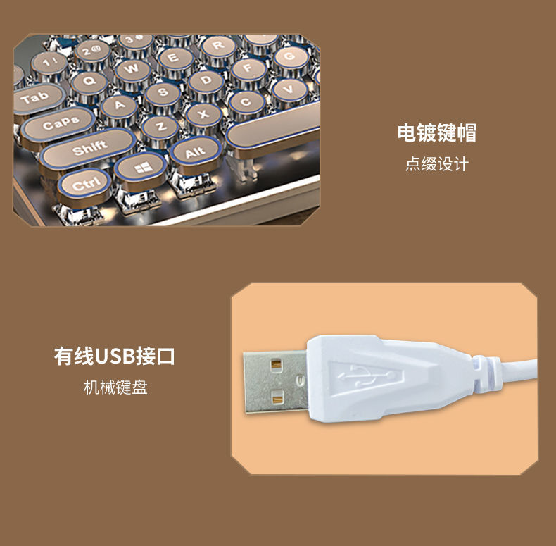Steampunk 레트로 기계 키보드 소녀 귀여운 컴퓨터 외부 게임 사무실 케이블 스페셜