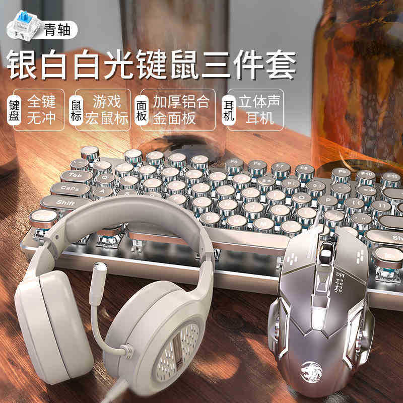 • 녹색 축-[3종 세트] 실버 화이트-화이트 라이트 + 게이밍 매크로 마우스 + 헤드폰