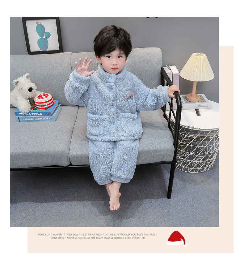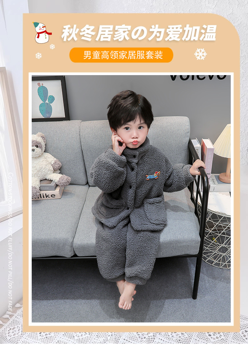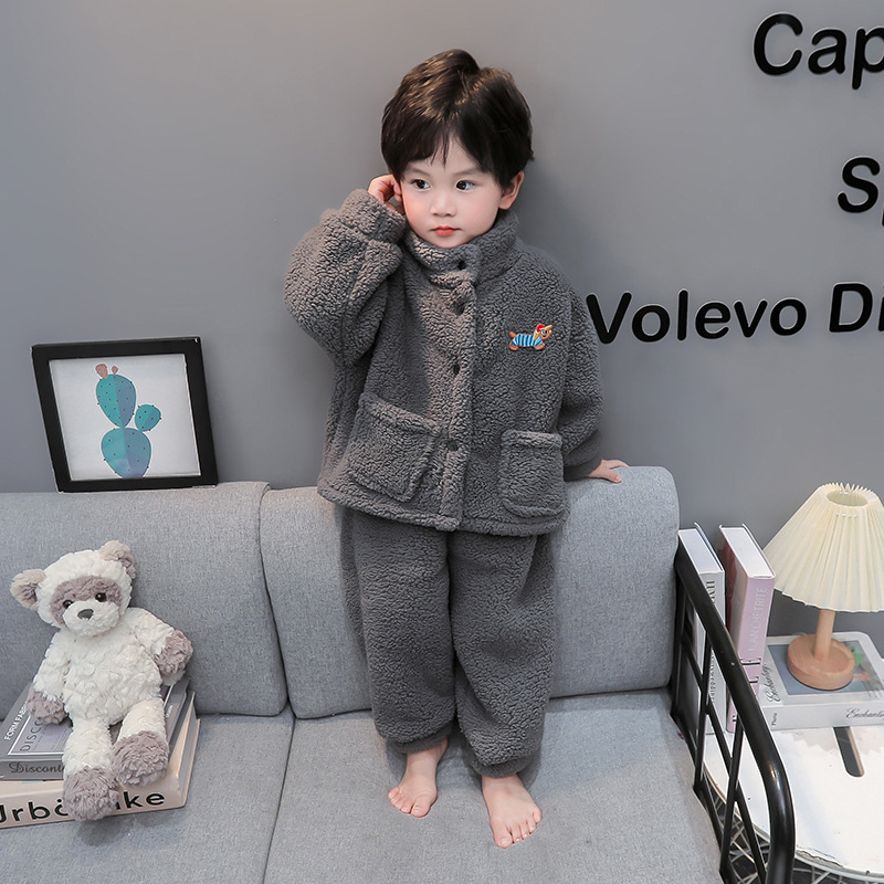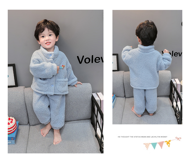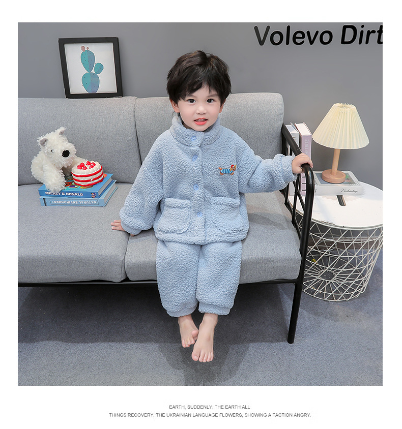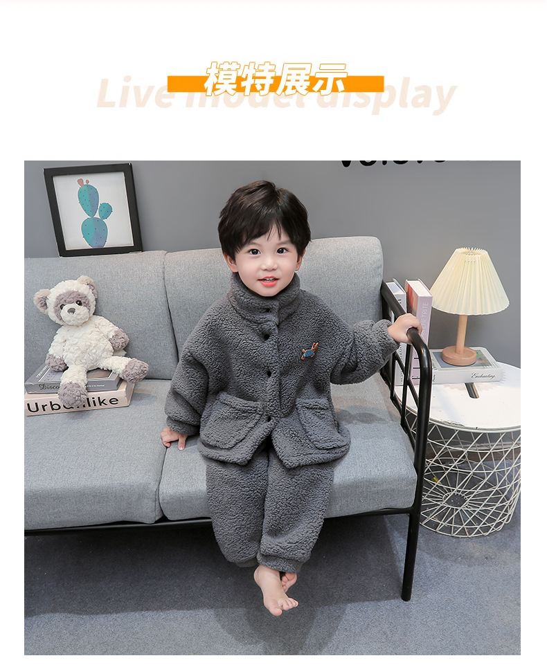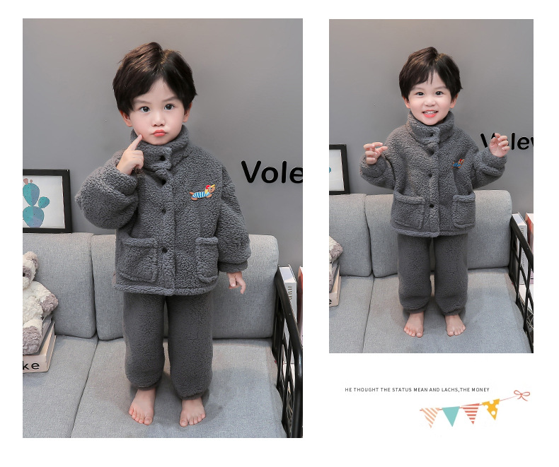 소년 산호 양털 잠옷 가을과 겨울 두꺼운 아기 소년 플란넬 귀여운 세트 겉옷 어린이 홈 옷스토어 가기