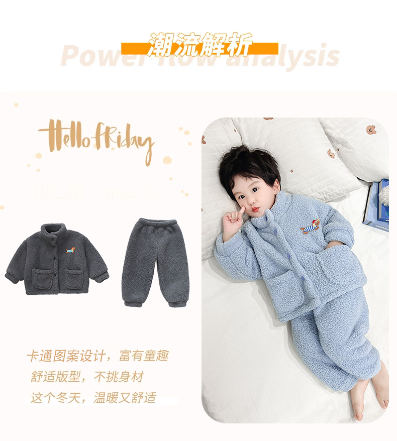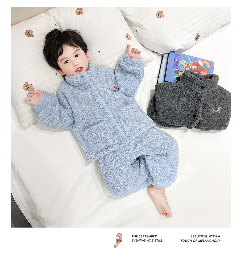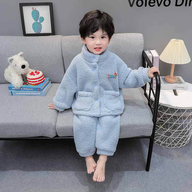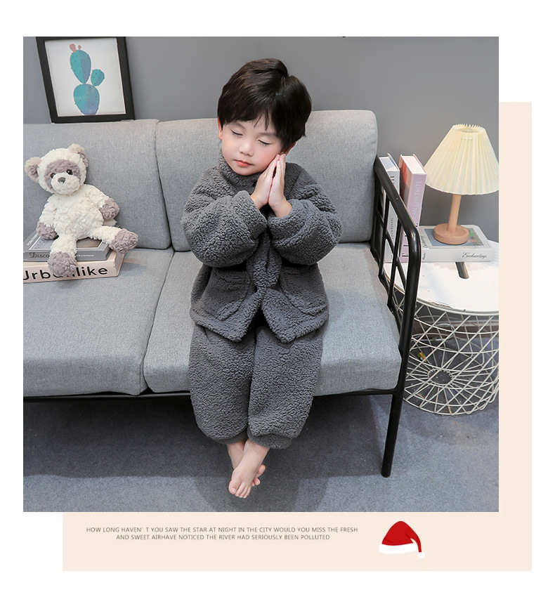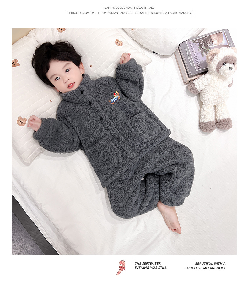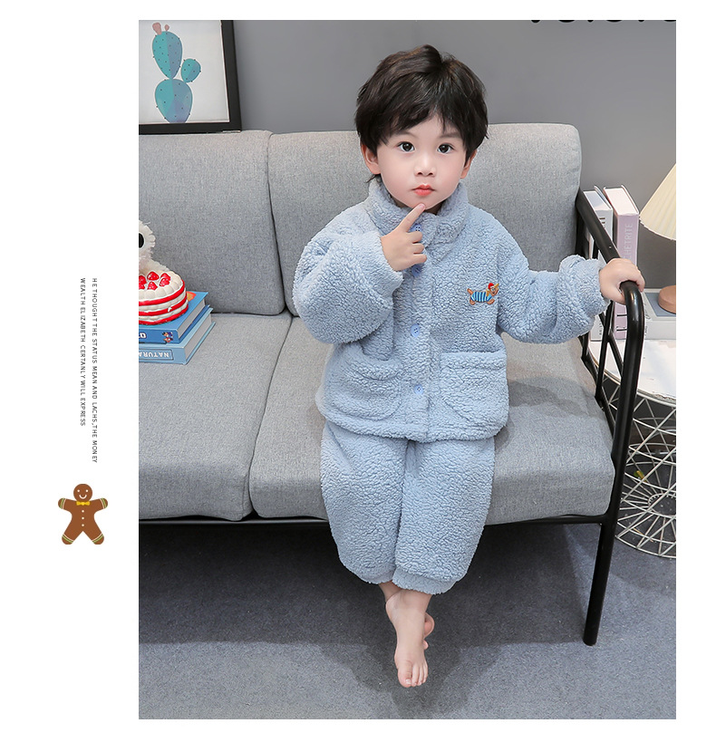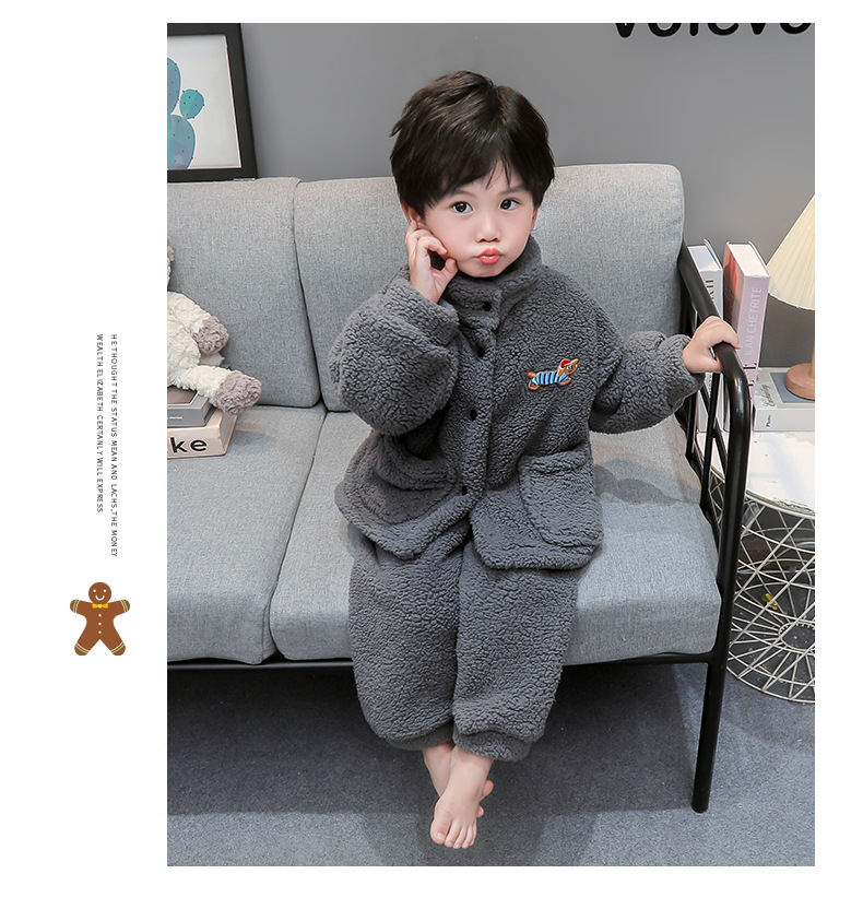 소년 산호 양털 잠옷 가을과 겨울 두꺼운 아기 소년 플란넬 귀여운 세트 겉옷 어린이 홈 옷스토어 가기
