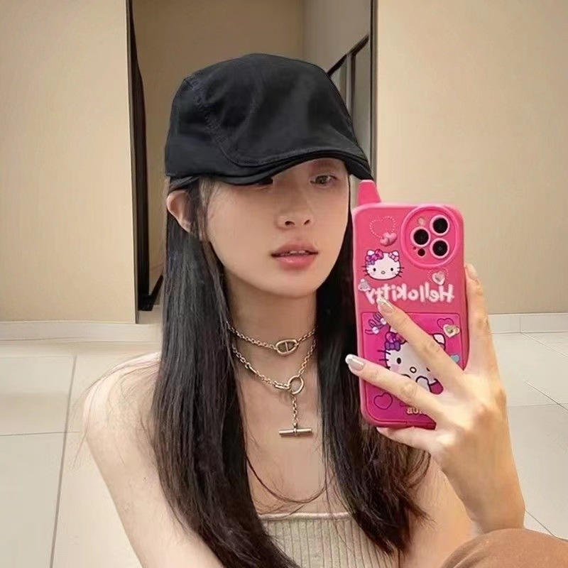 앞으로 모자 큰 머리 Wai 프랑스 베레 여성 봄과 가을 안티 웨어 골동품 앞으로 모자 얼굴 작은 검은 색 화가
