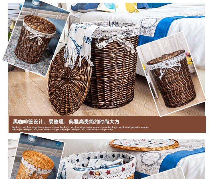 등나무 더러운 옷 바구니 보관 바구니 가정용 더러운 옷 바구니 버들 세탁 바구니 바구니 뜨거운 냄비 가게 옷 컬렉션 타오 치