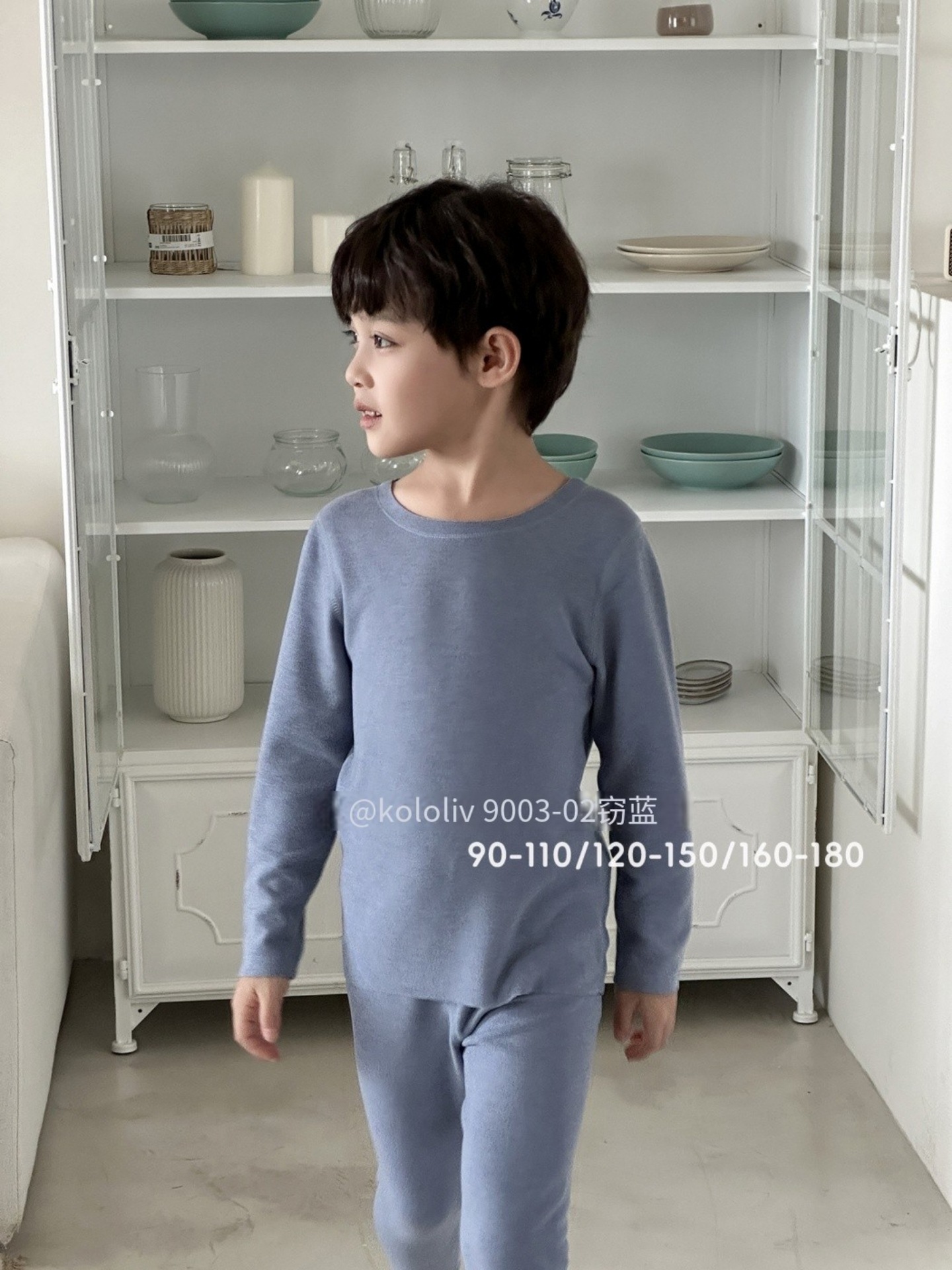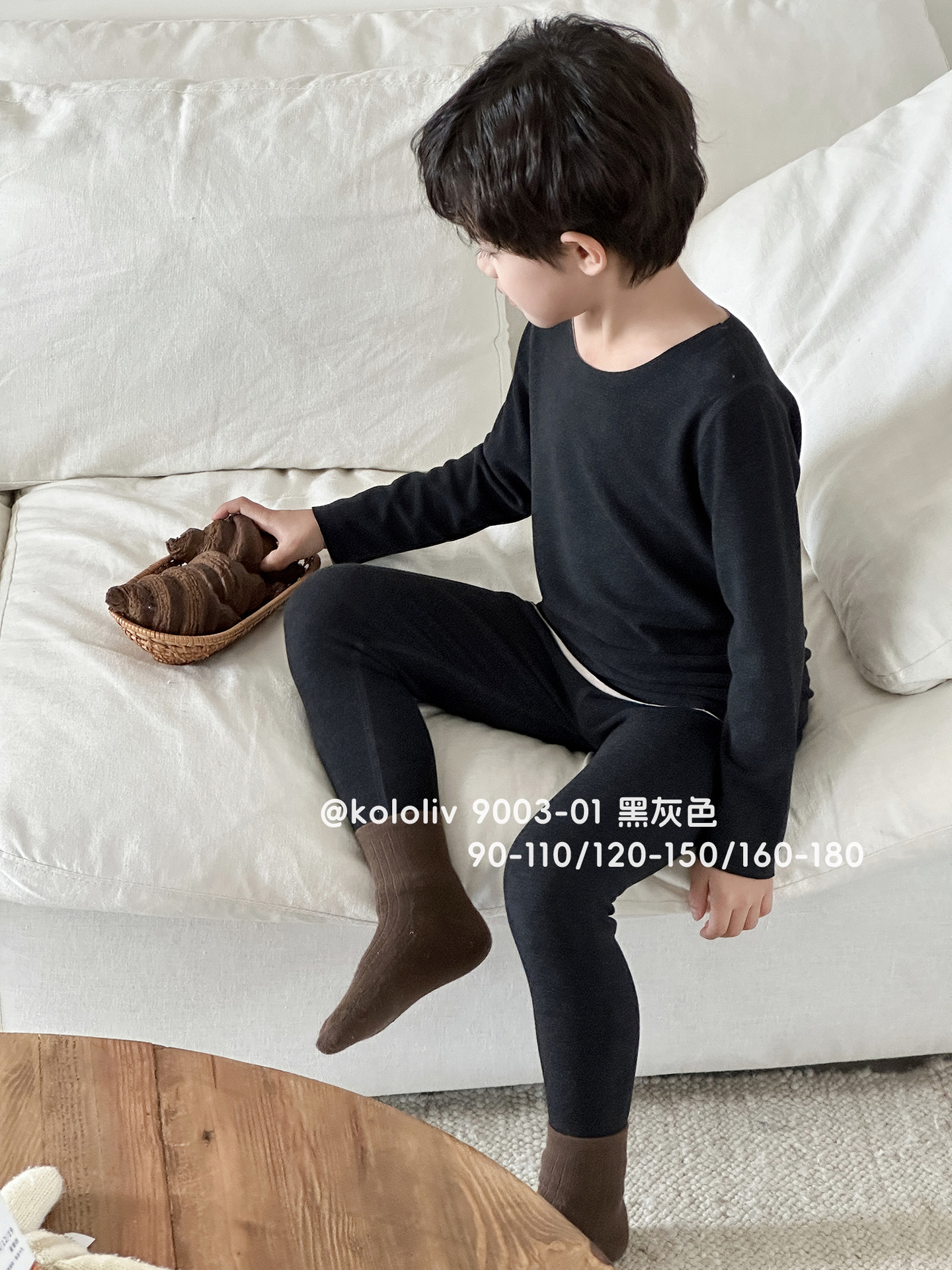 콜라 배 겨울 홈 의류 소년 소녀 기모 열 속옷 홈 세트 어린이 가을 옷과 바지