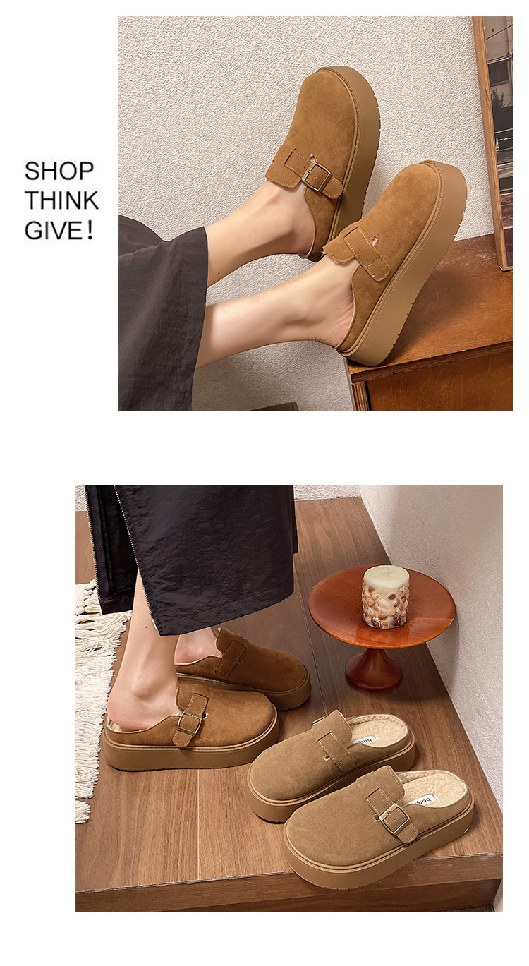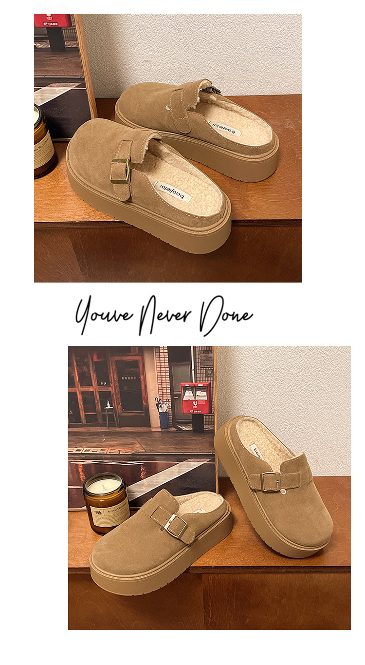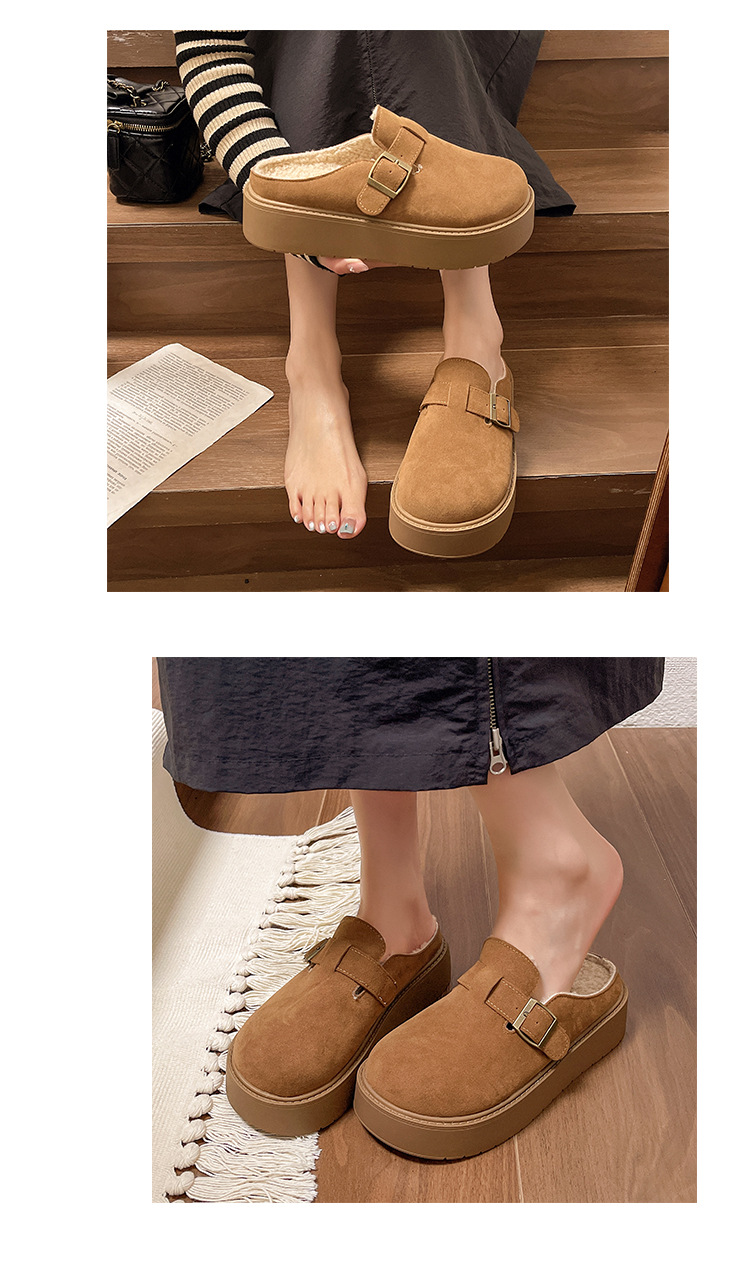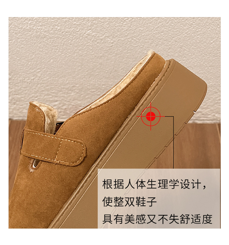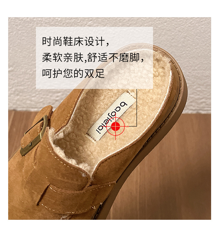 두꺼운 밑창 복고풍 Birkenth 신발 여성의 2025 가을과 겨울 새로운 푹신한 슬리퍼 여성의 야외 면화 슬리퍼 기모 덮인 발가락 하프 슬리퍼