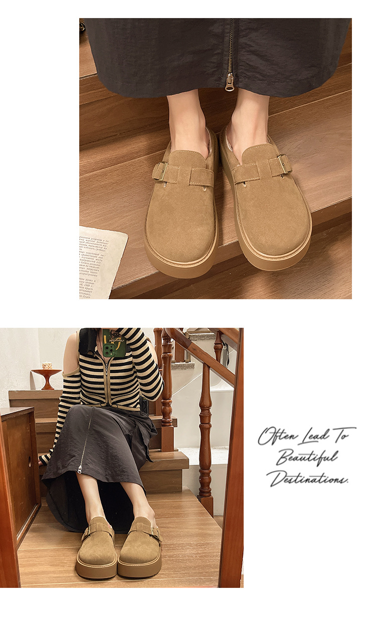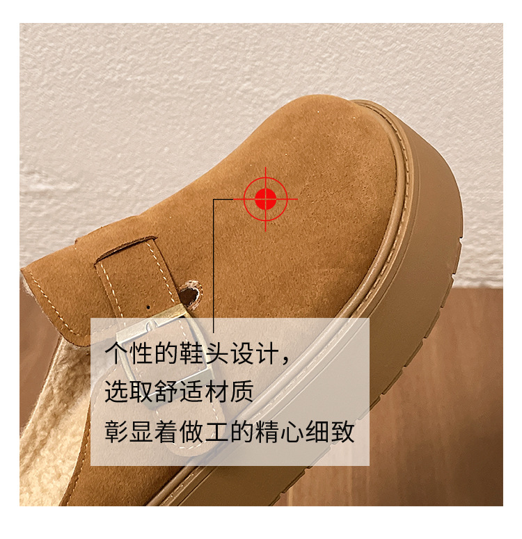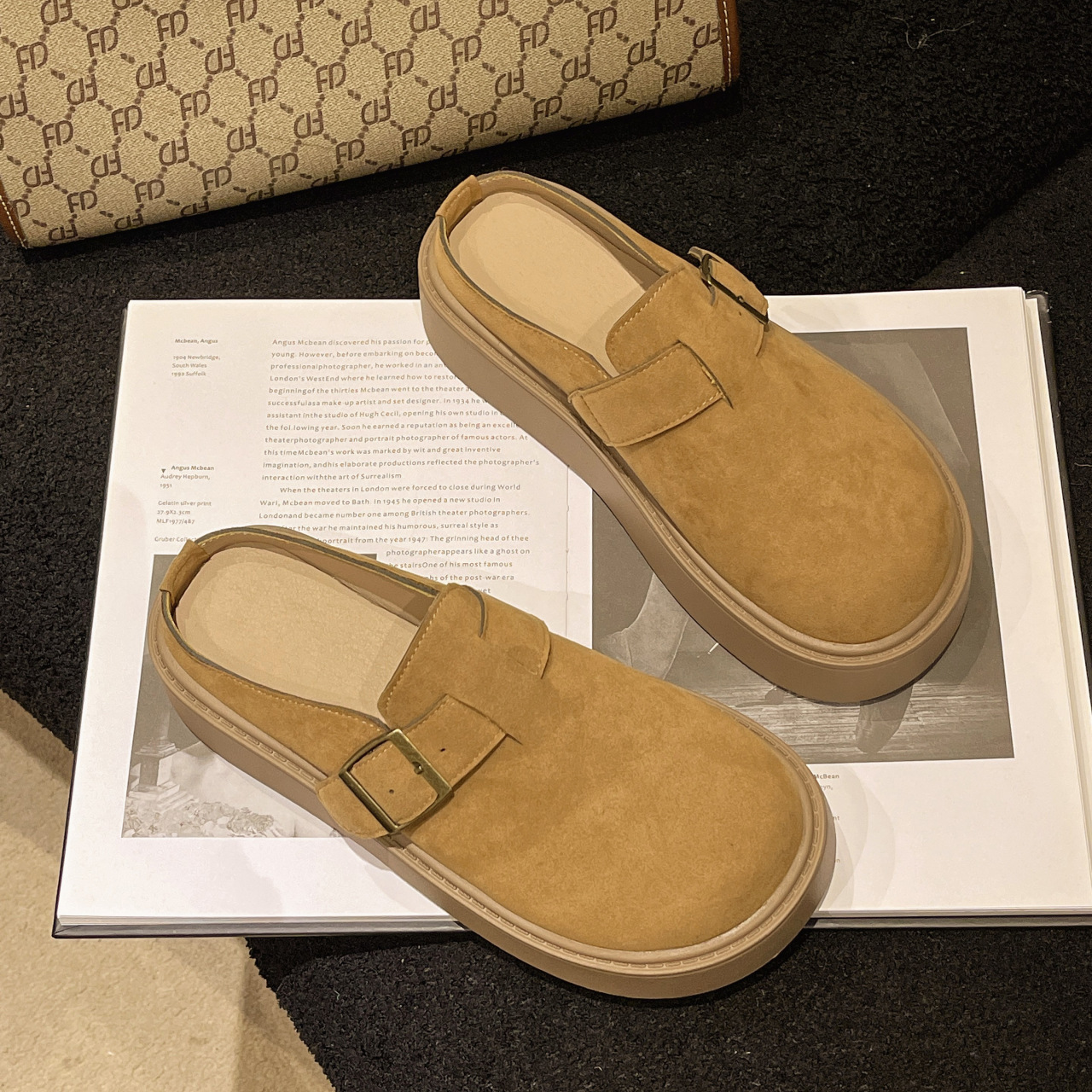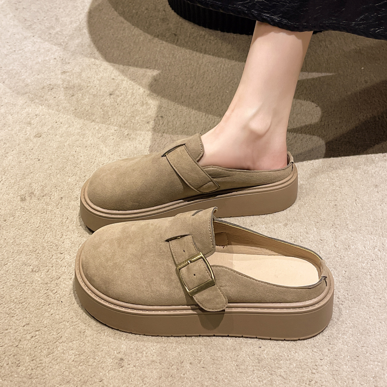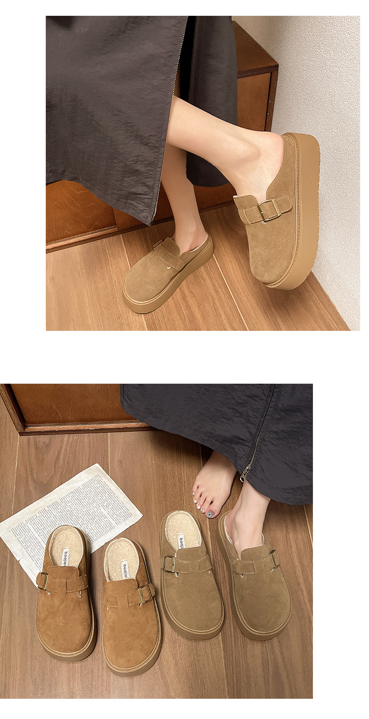두꺼운 밑창 복고풍 Birkenth 신발 여성의 2025 가을과 겨울 새로운 푹신한 슬리퍼 여성의 야외 면화 슬리퍼 기모 덮인 발가락 하프 슬리퍼