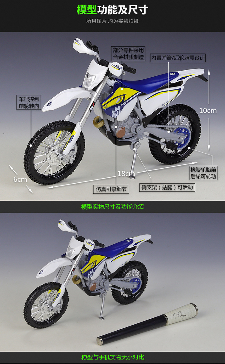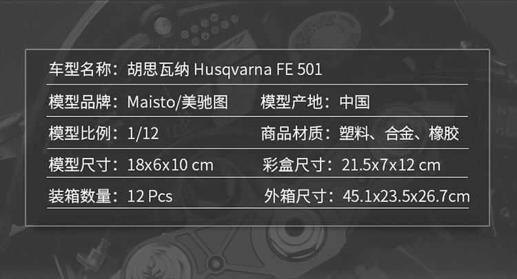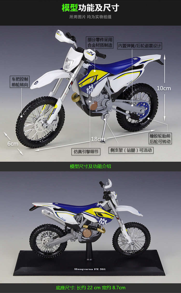 메치투 1:12 후스바나 FE 501 오프로드 모터사이클 시뮬레이션 완성 모델