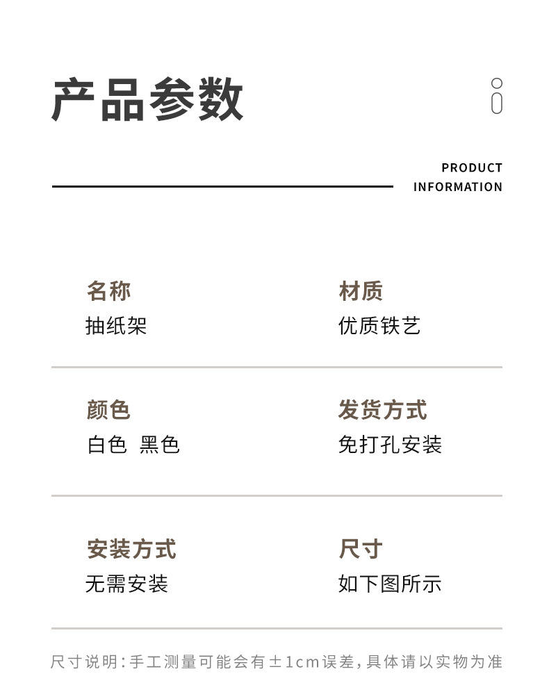 • 검은색 종이 타월 홀더 수직 걸이 스타일