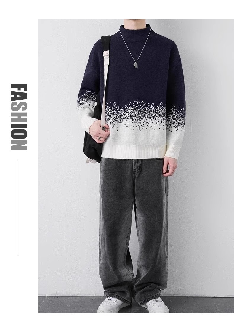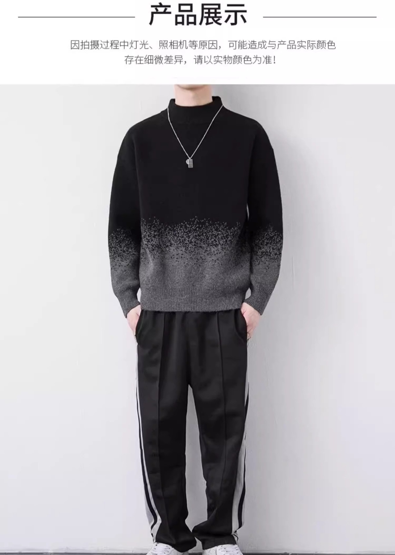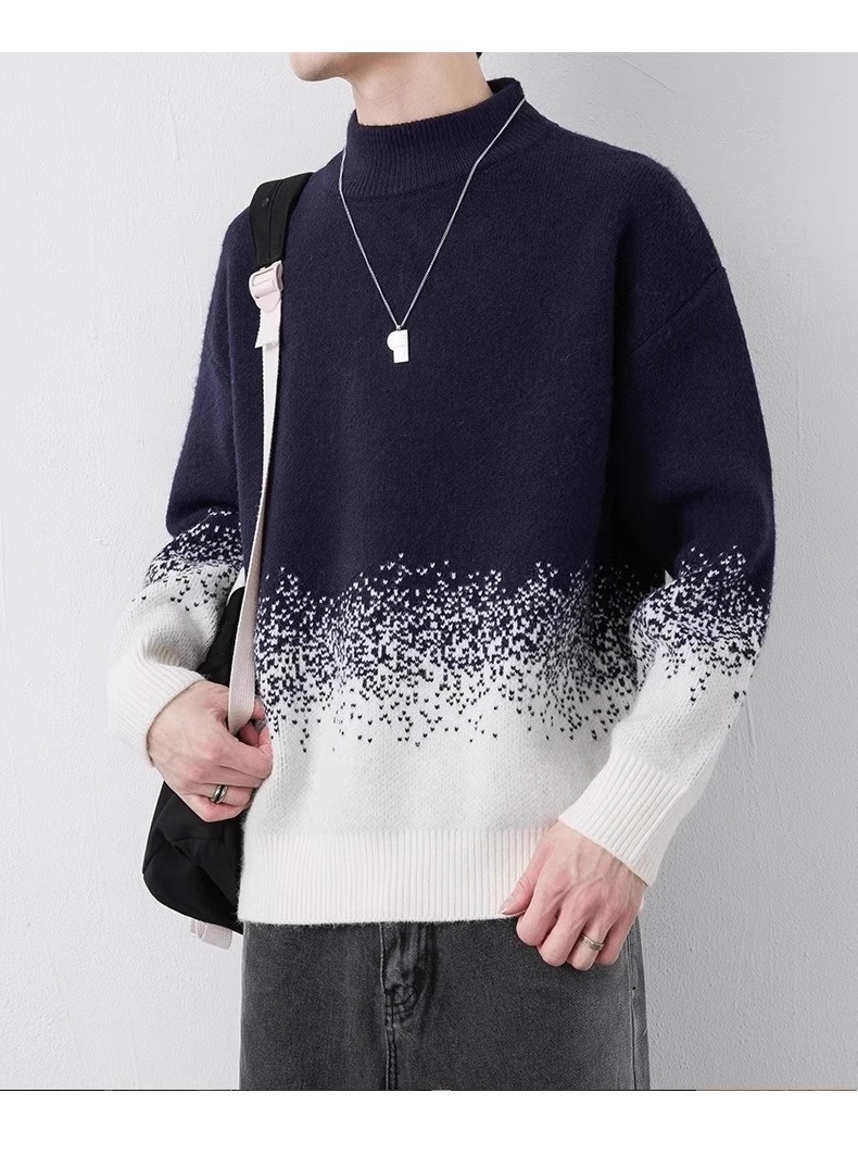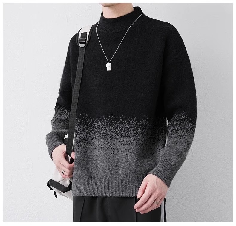 남성용 점진적 컬러 스웨터 두꺼운 트렌디 브랜드 느슨한 내부 스웨터 2024 새로운 울 스웨터 가을과 겨울 의류스토어 가기