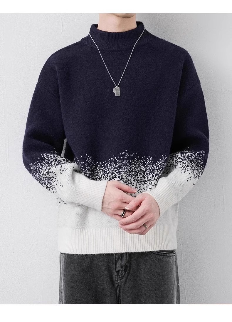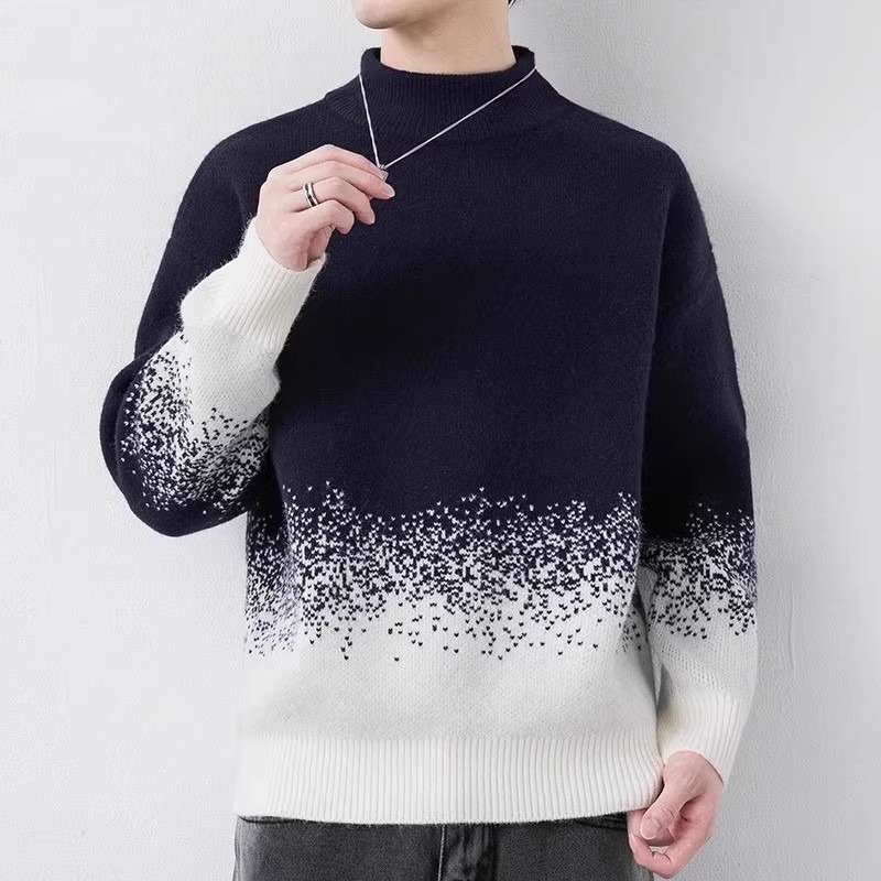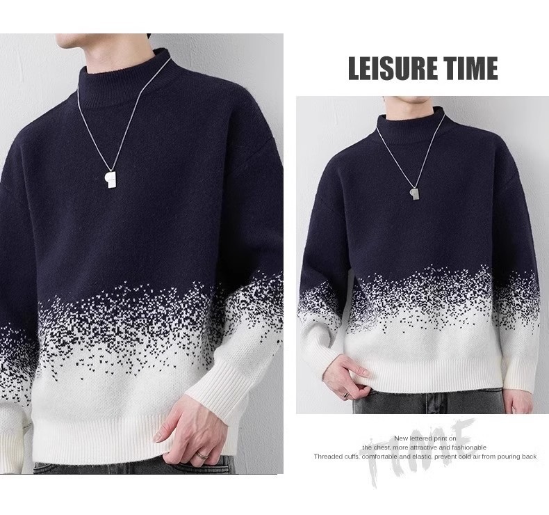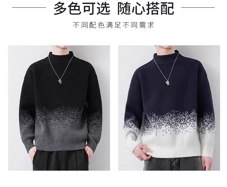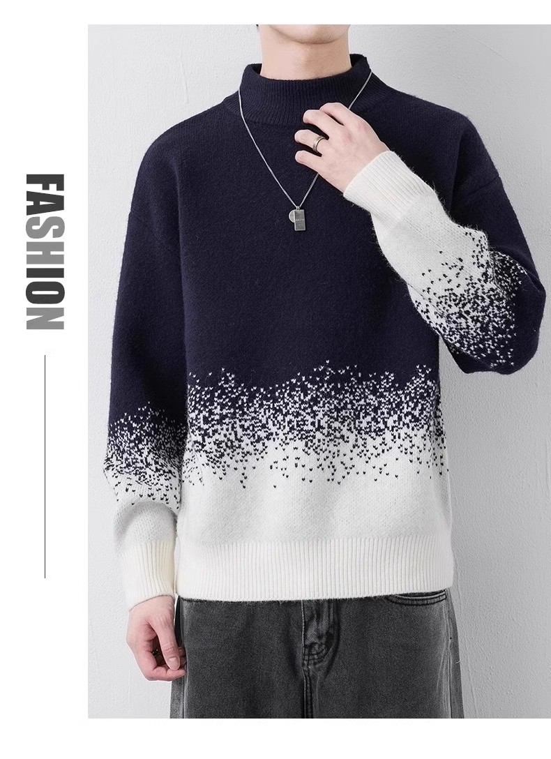 남성용 점진적 컬러 스웨터 두꺼운 트렌디 브랜드 느슨한 내부 스웨터 2024 새로운 울 스웨터 가을과 겨울 의류스토어 가기