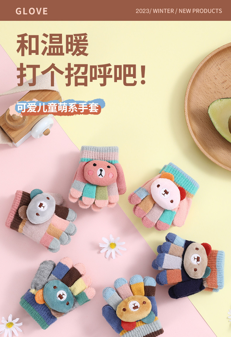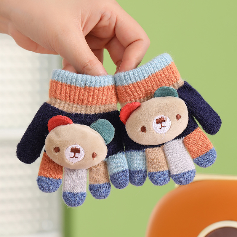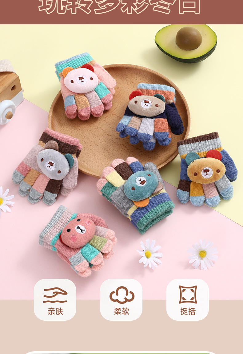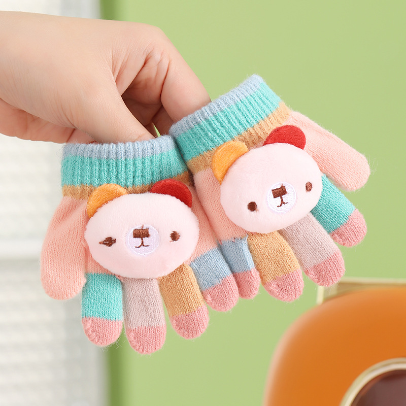 아기의 겨울 다섯 손가락 장갑 아기의 장갑 가을과 겨울 따뜻한 감기 방지 어린이 소년 소녀 니트 양모