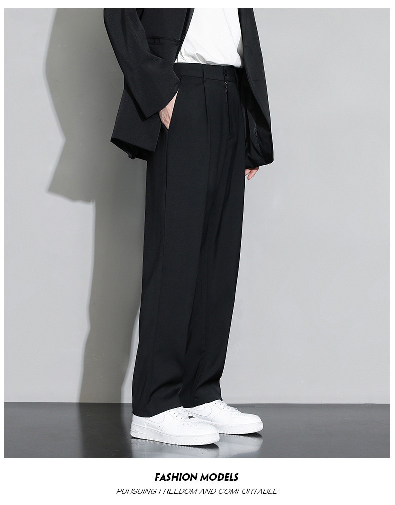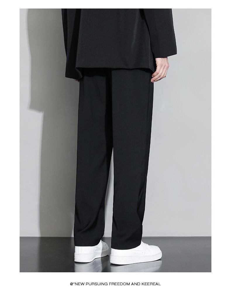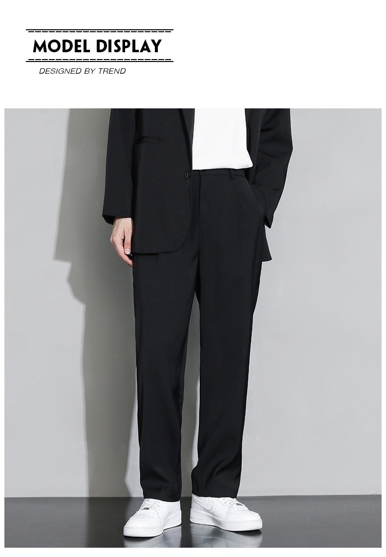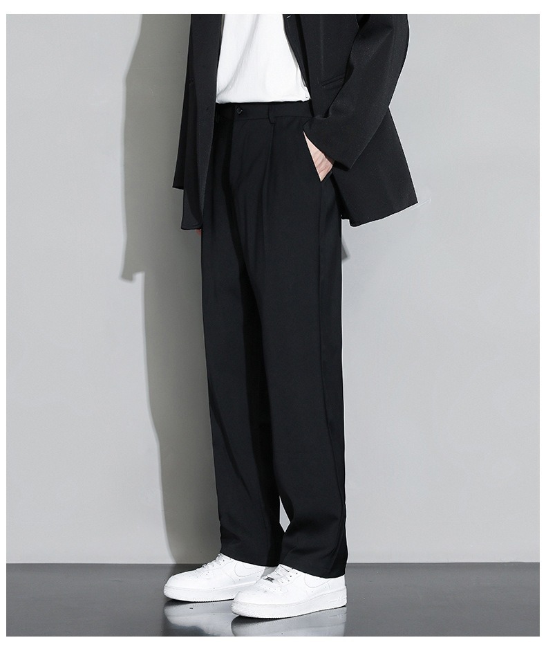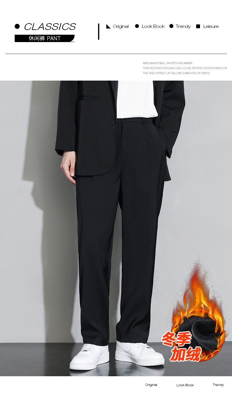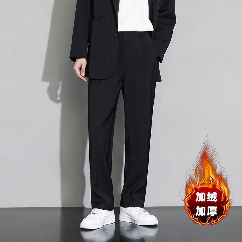 작은 서양 바지 남자 자른 바지 봄 가을 기모 스트레이트 캐주얼 바지 남자 닦아 넓은 다리 검은 세트 바지스토어 가기