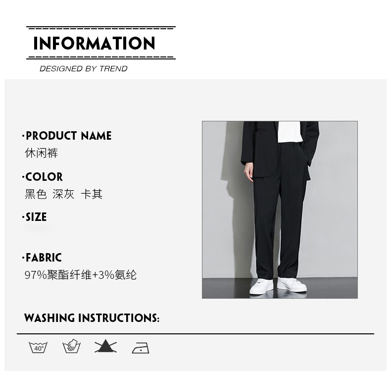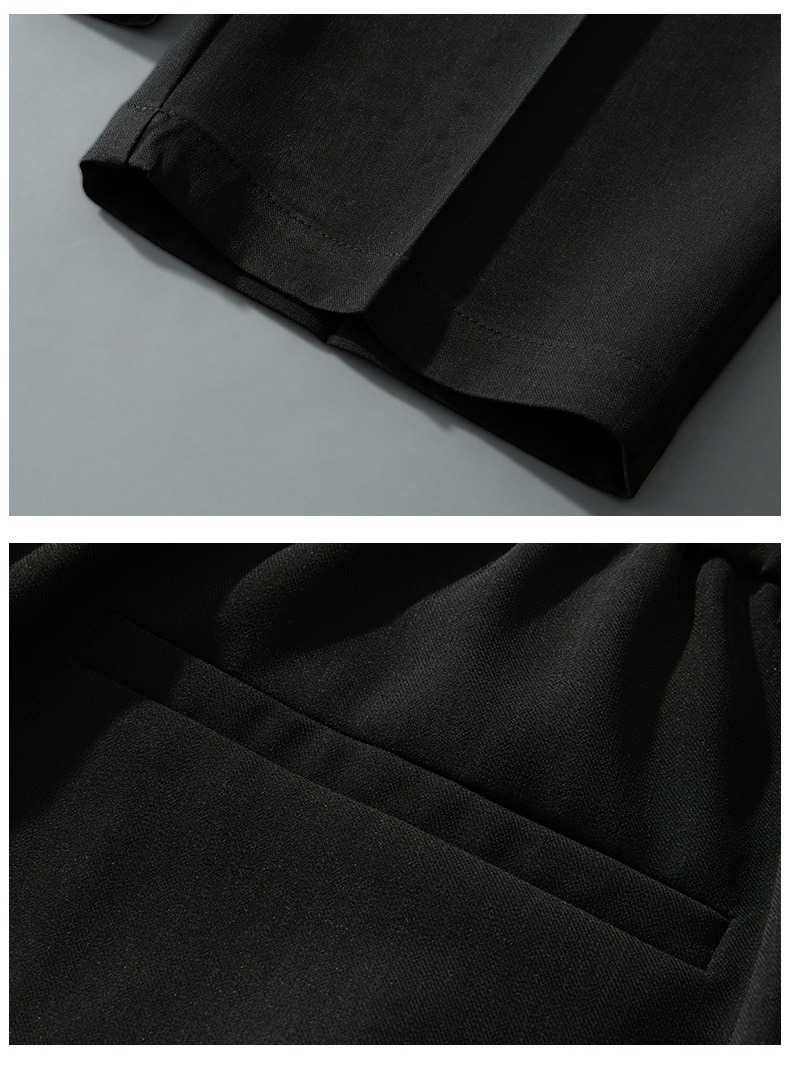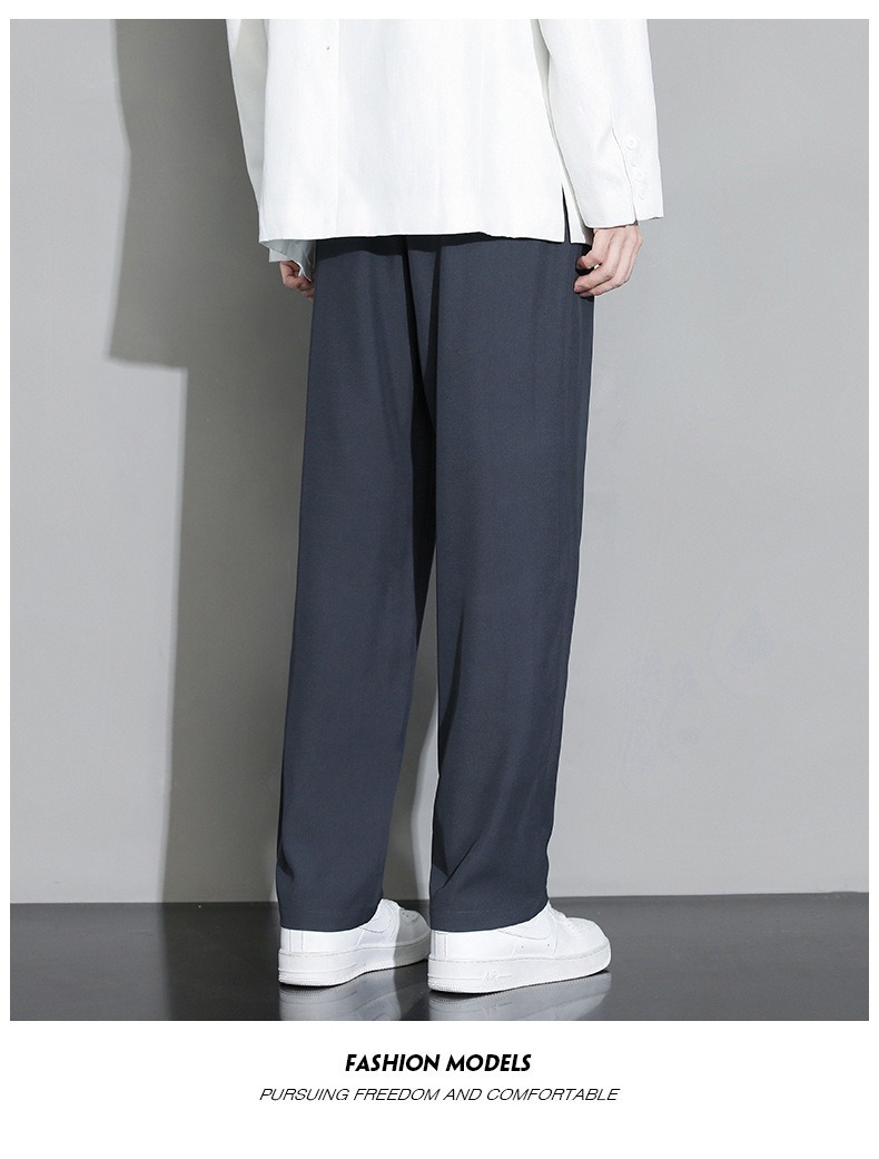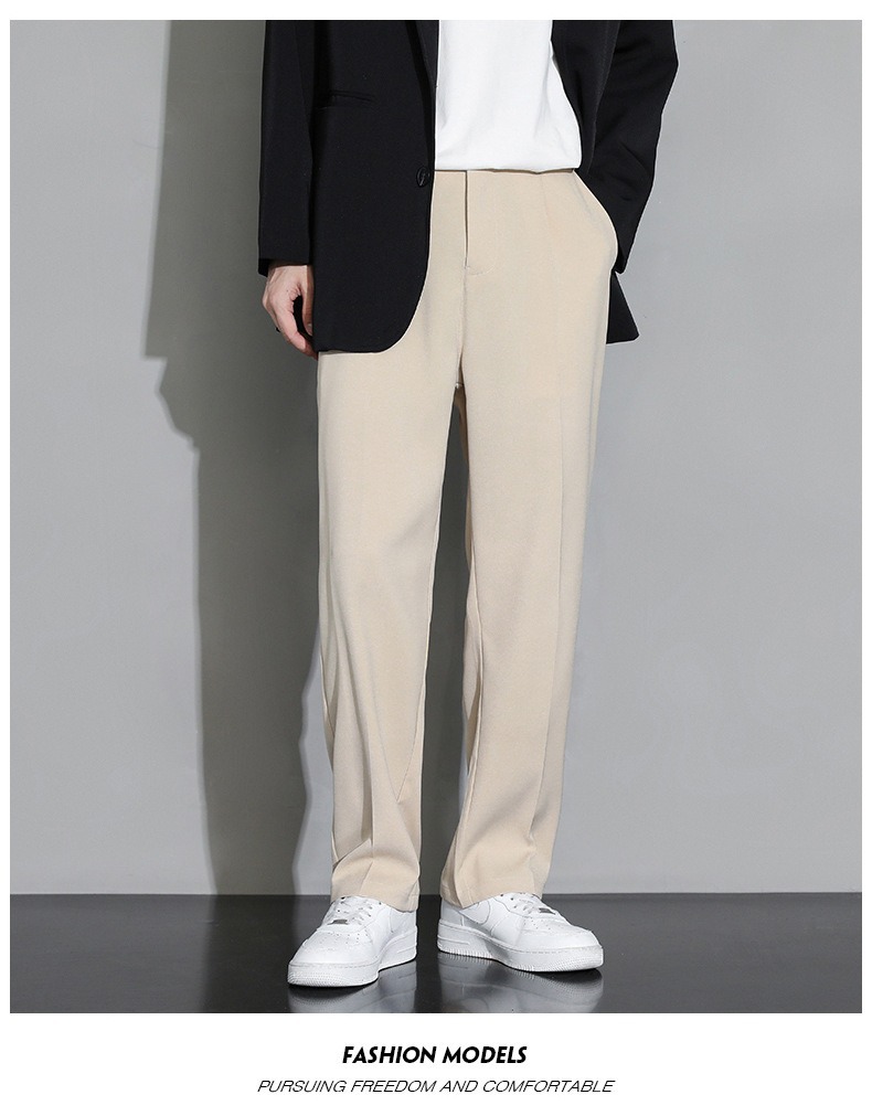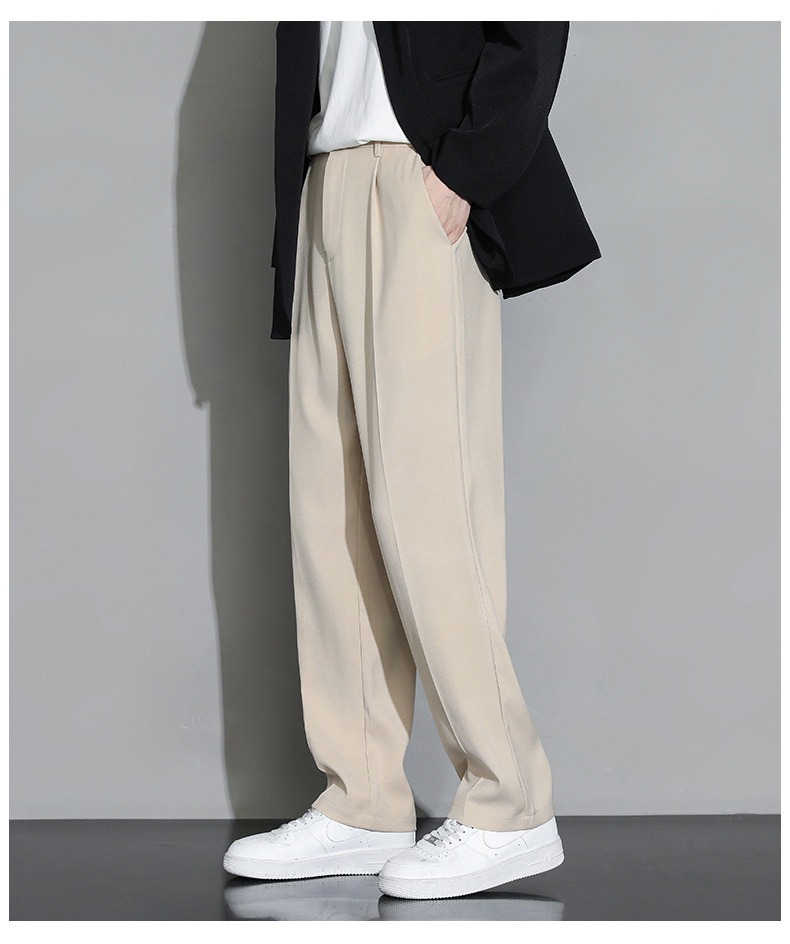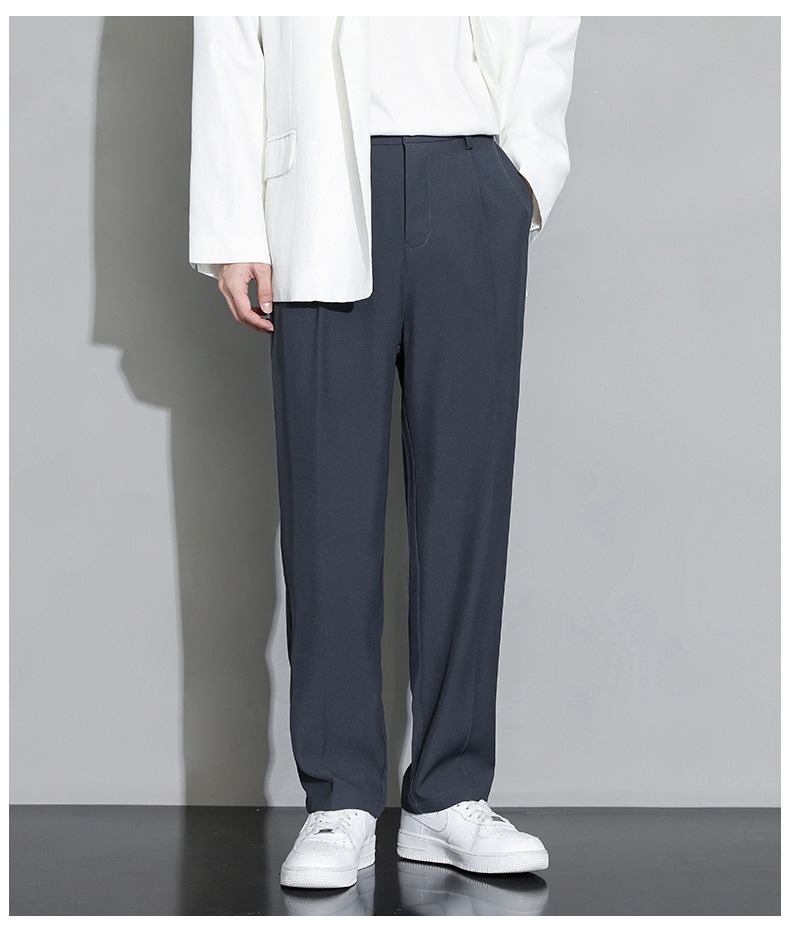 작은 서양 바지 남자 자른 바지 봄 가을 기모 스트레이트 캐주얼 바지 남자 닦아 넓은 다리 검은 세트 바지스토어 가기
