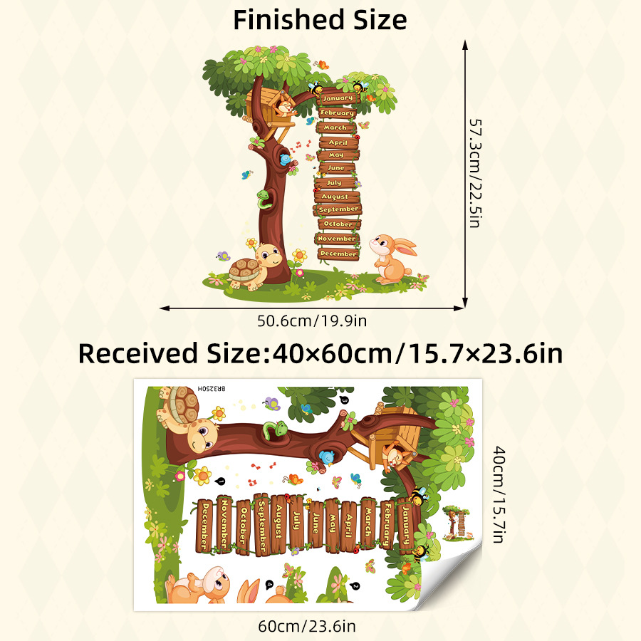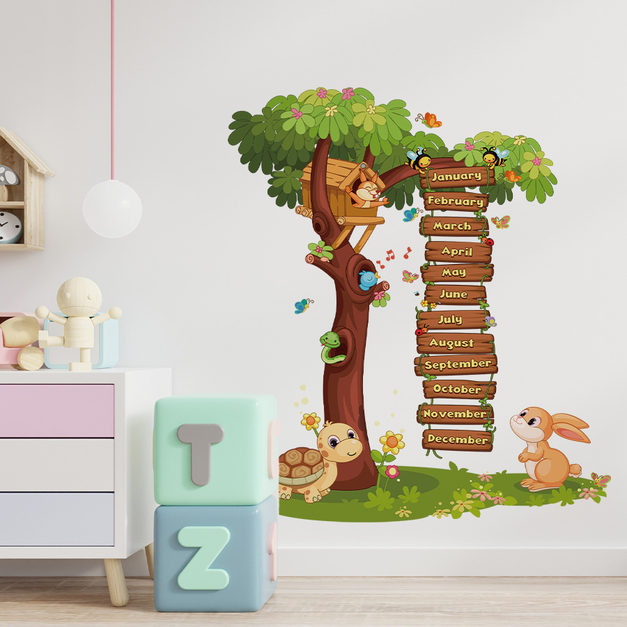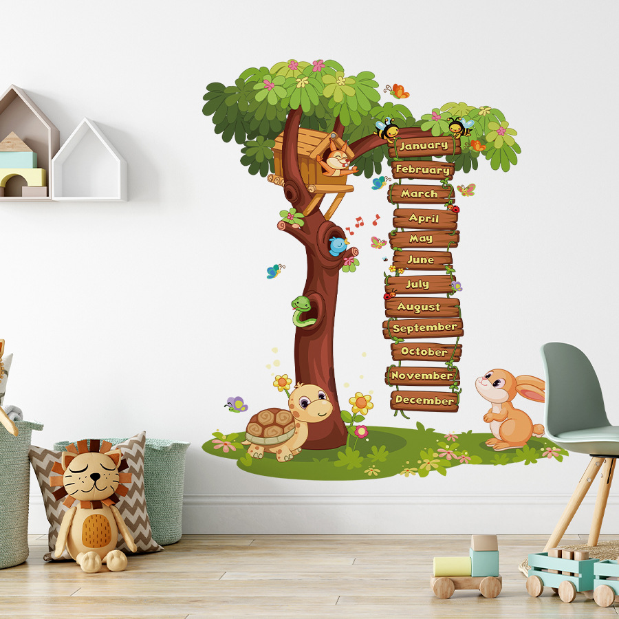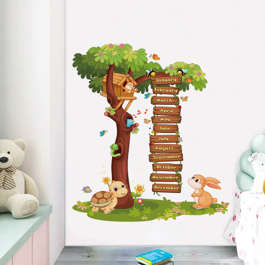 만화 나무 귀여운 작은 동물 영어 문구 자체 접착 벽 스티커 어린이 방 장식 스티커 BR3250H스토어 가기