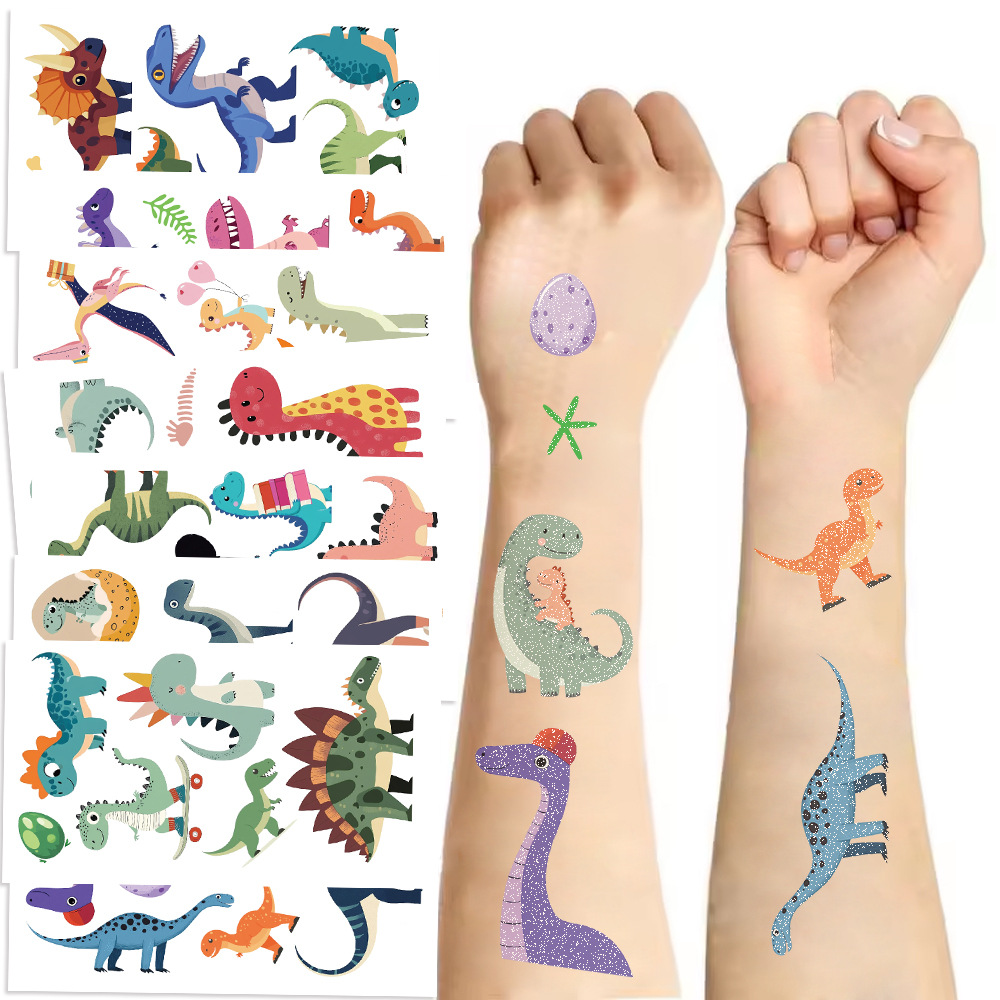 국경 새로운 만화 공룡 시리즈 반짝이 문신 방수 어린이 파티 선물 재미있는 재미스토어 가기