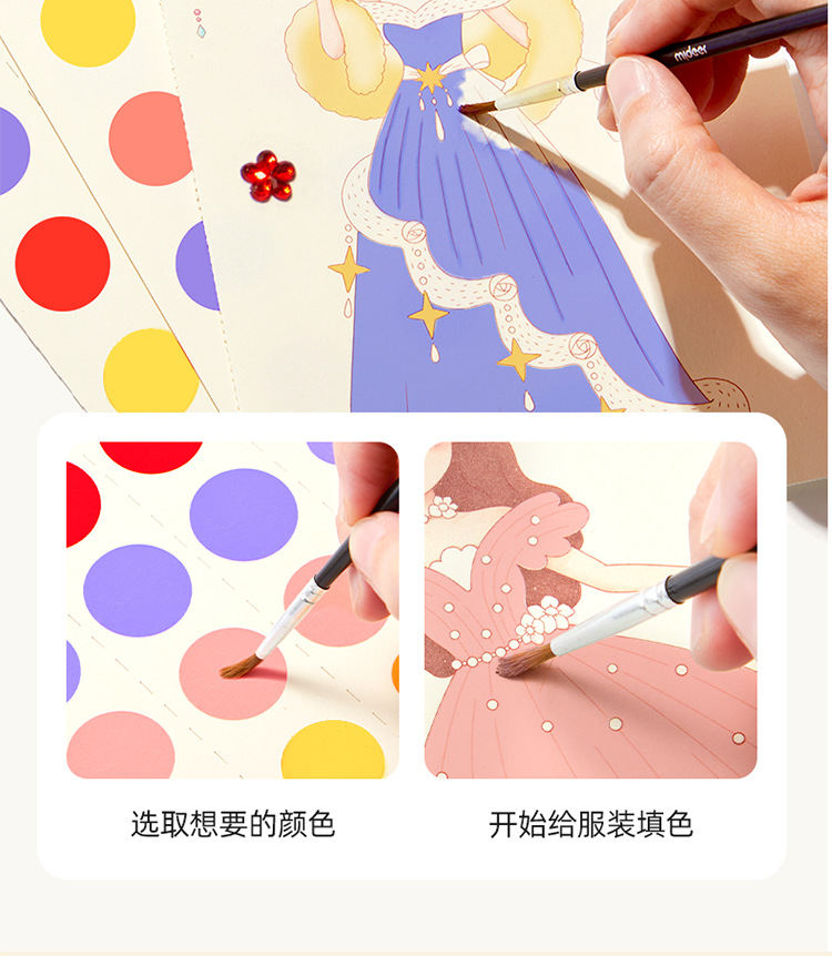 Mideer Mi Lu Pokes Le 수제 DIY 소재 소녀 장난감 높은 색상 가치 붙여 넣기 공주 조용한 책스토어 가기