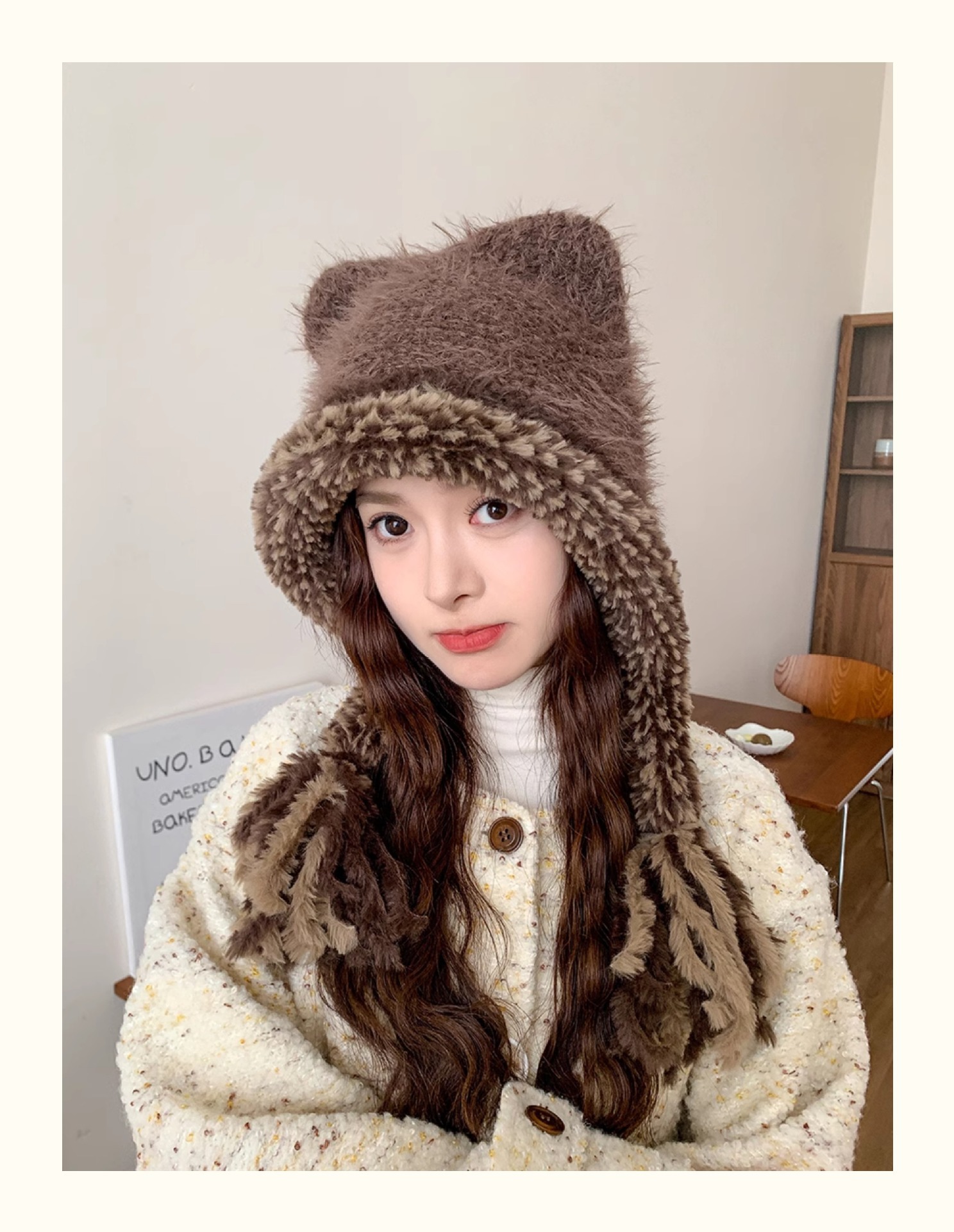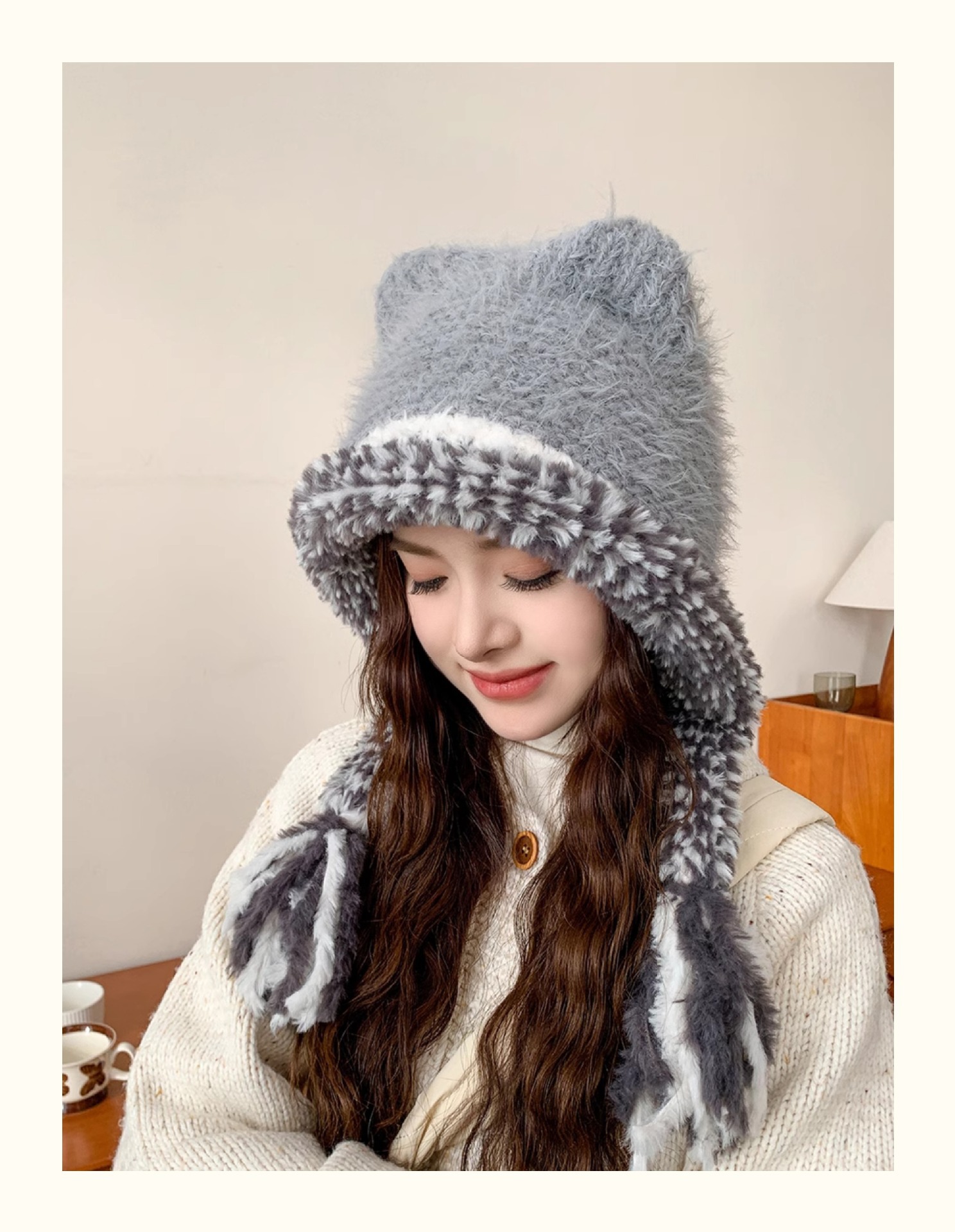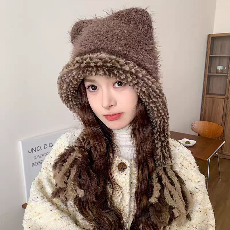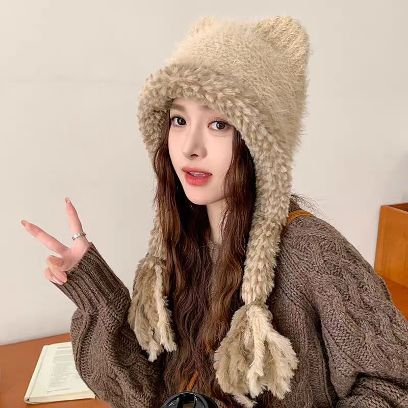 리틀 베어 푹신한 모자 어린이 겨울 새 기모 방한 레이 펑 모자 사이클링 따뜻한 얼굴 작은 귀 보호 니트 모자