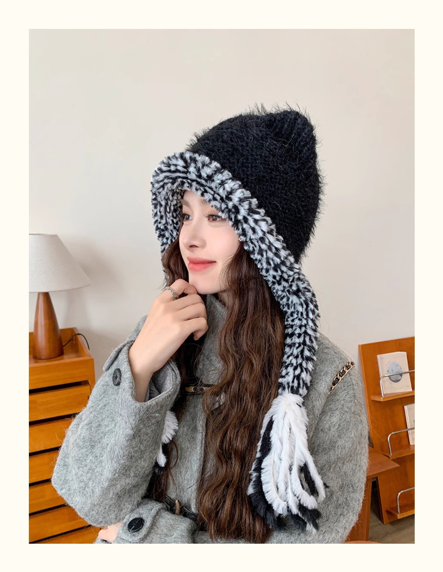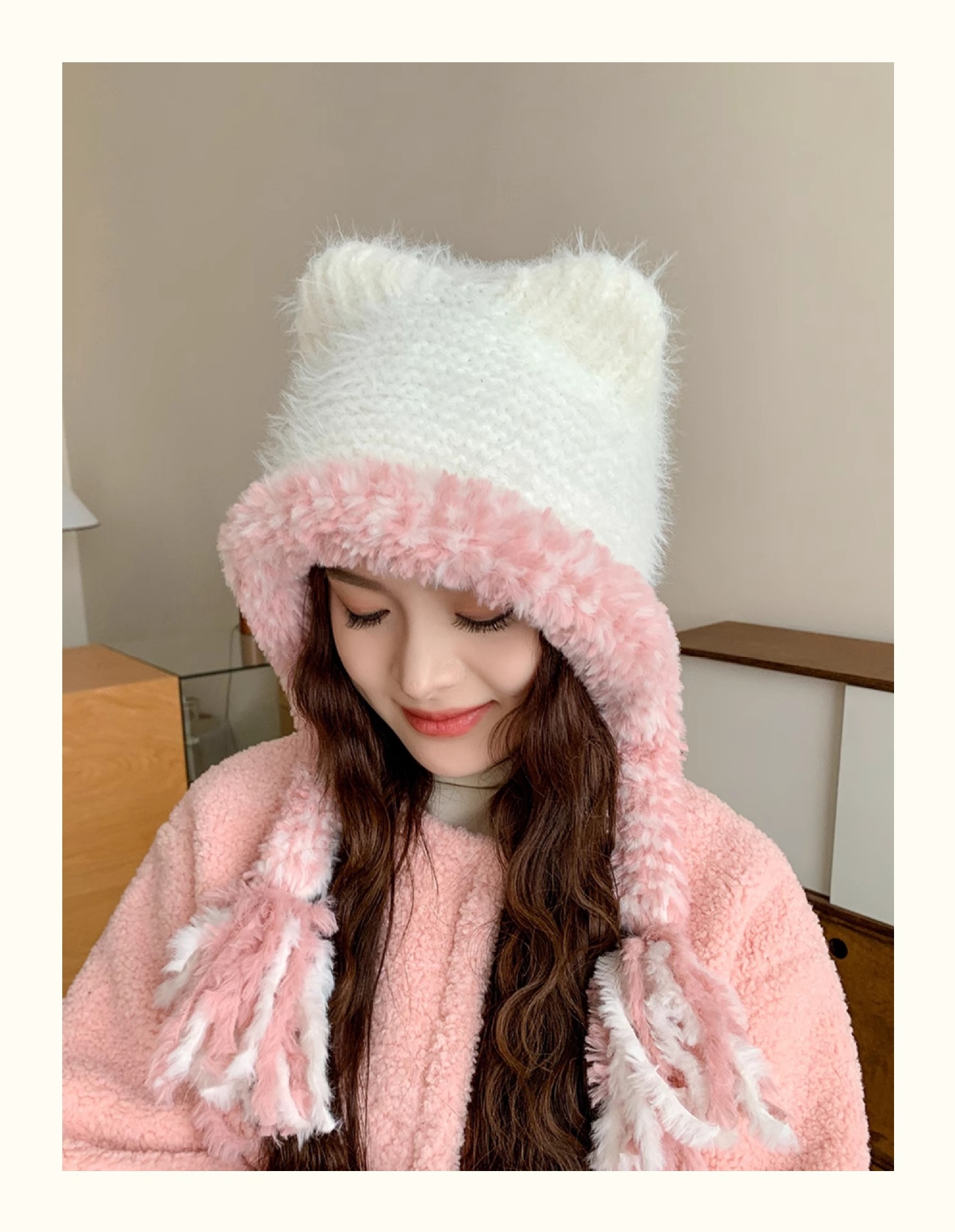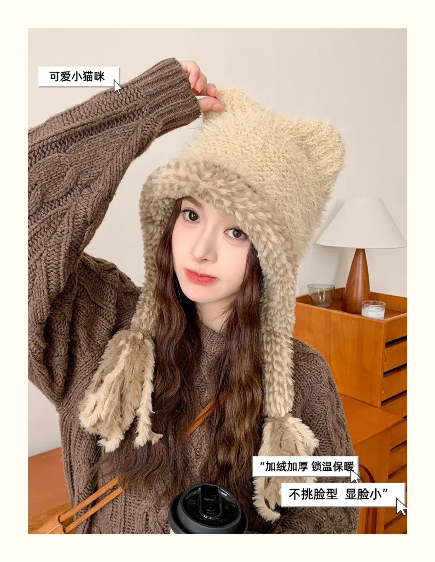 리틀 베어 푹신한 모자 어린이 겨울 새 기모 방한 레이 펑 모자 사이클링 따뜻한 얼굴 작은 귀 보호 니트 모자