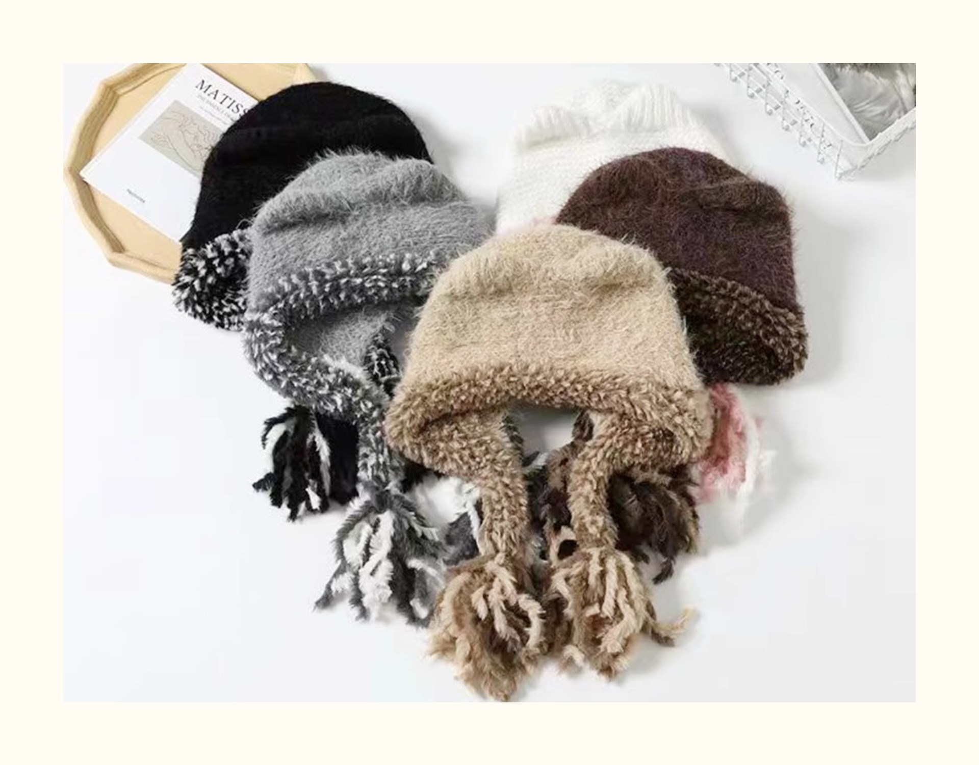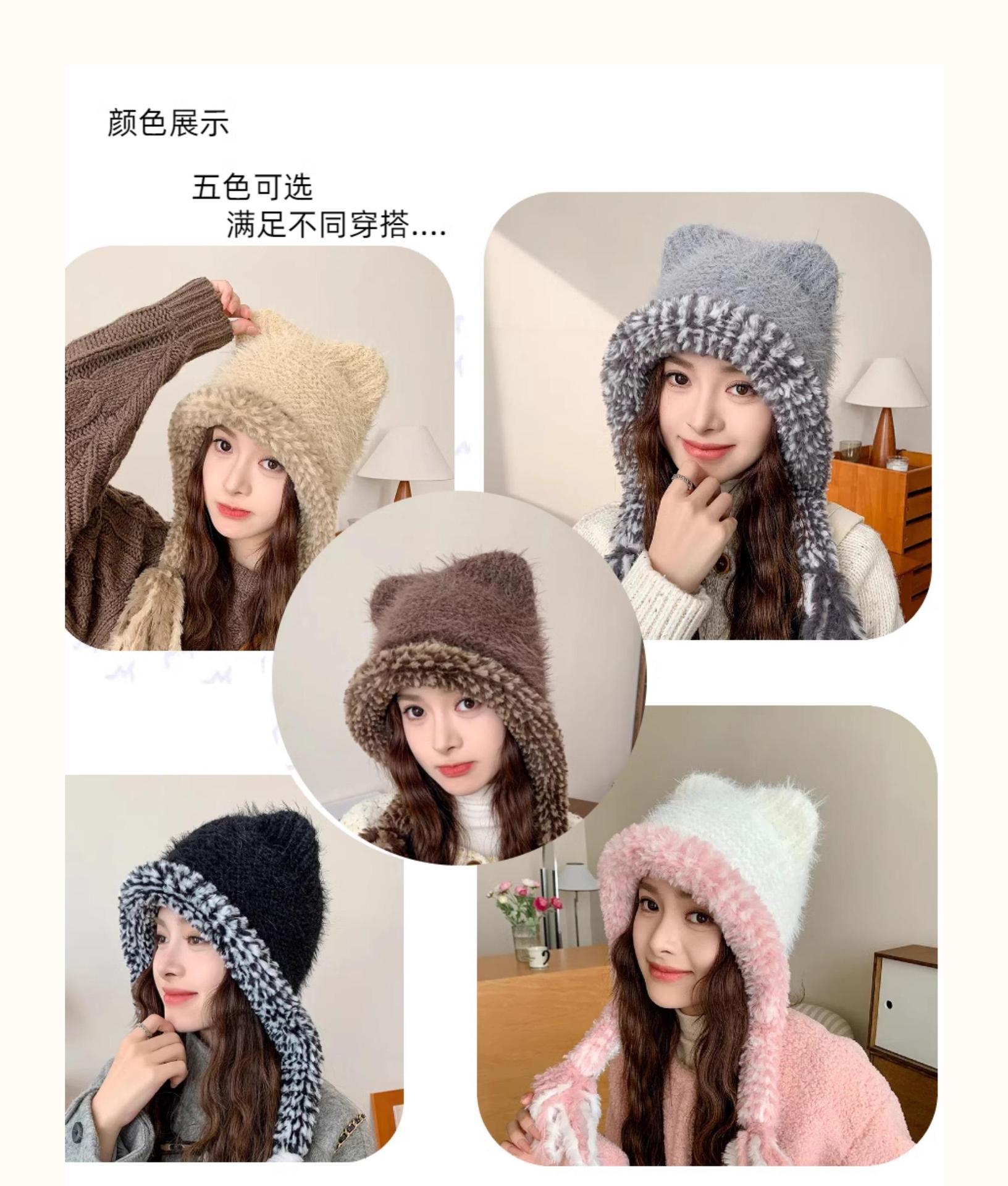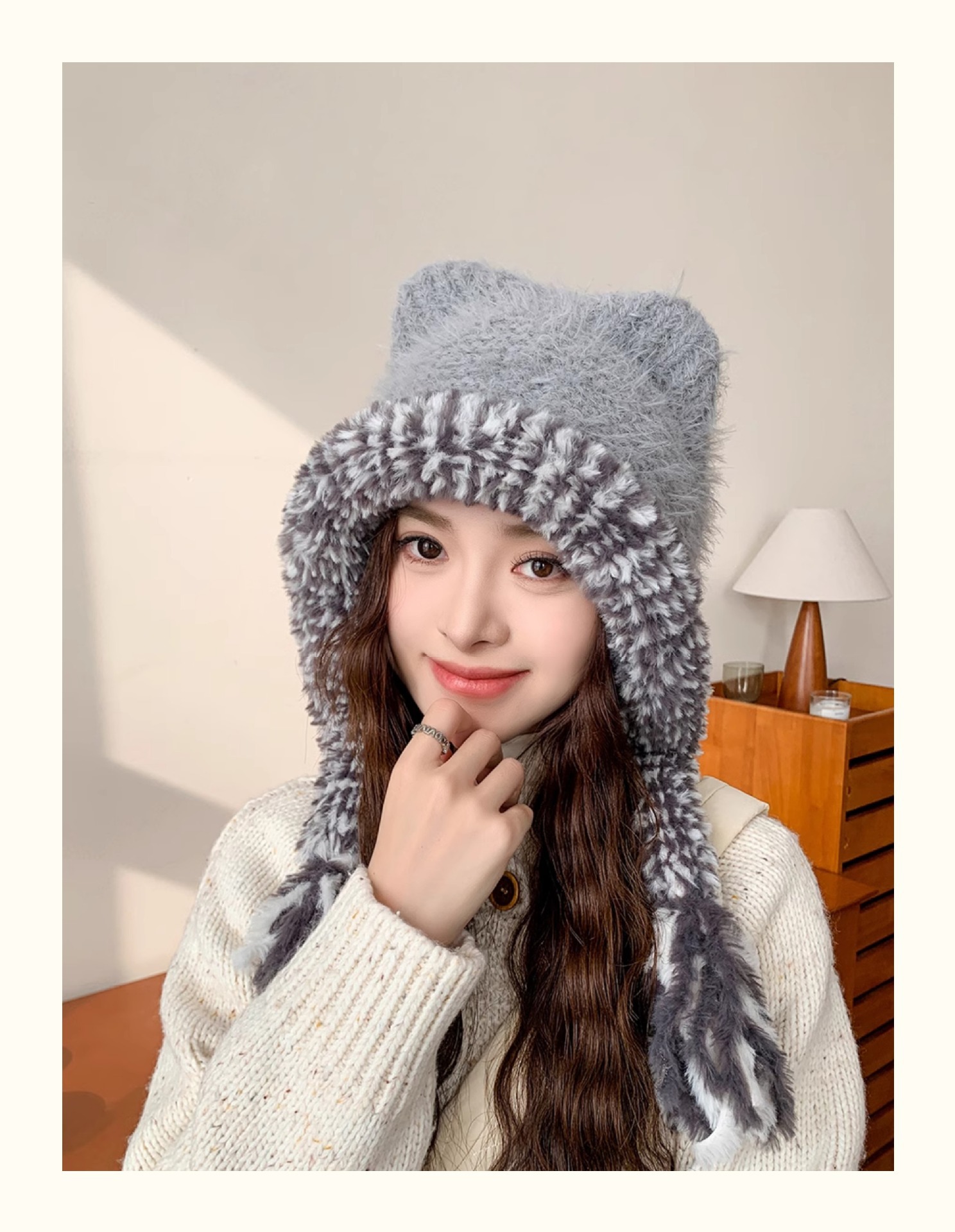 리틀 베어 푹신한 모자 어린이 겨울 새 기모 방한 레이 펑 모자 사이클링 따뜻한 얼굴 작은 귀 보호 니트 모자스토어 가기